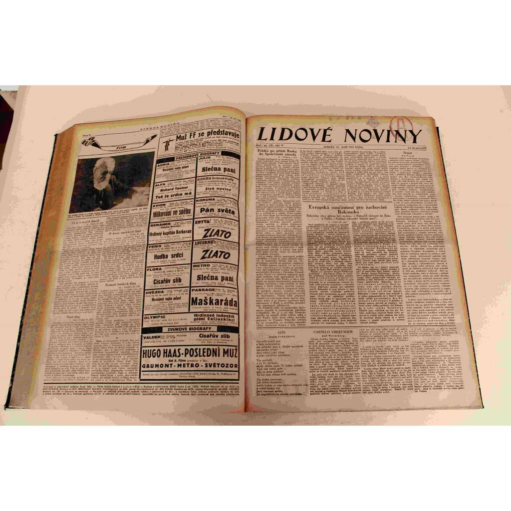 Lidové noviny 1934, roč. 42 (září-říjen) (deník, první republika, mj. Oldřich Nový, SSSR a Ženeva, Po hitlerovské revoluci evoluce, Americká stávka, Povstání ve Španělsku, atentát a úmrtí Alexandr I. a Louis Barthou)