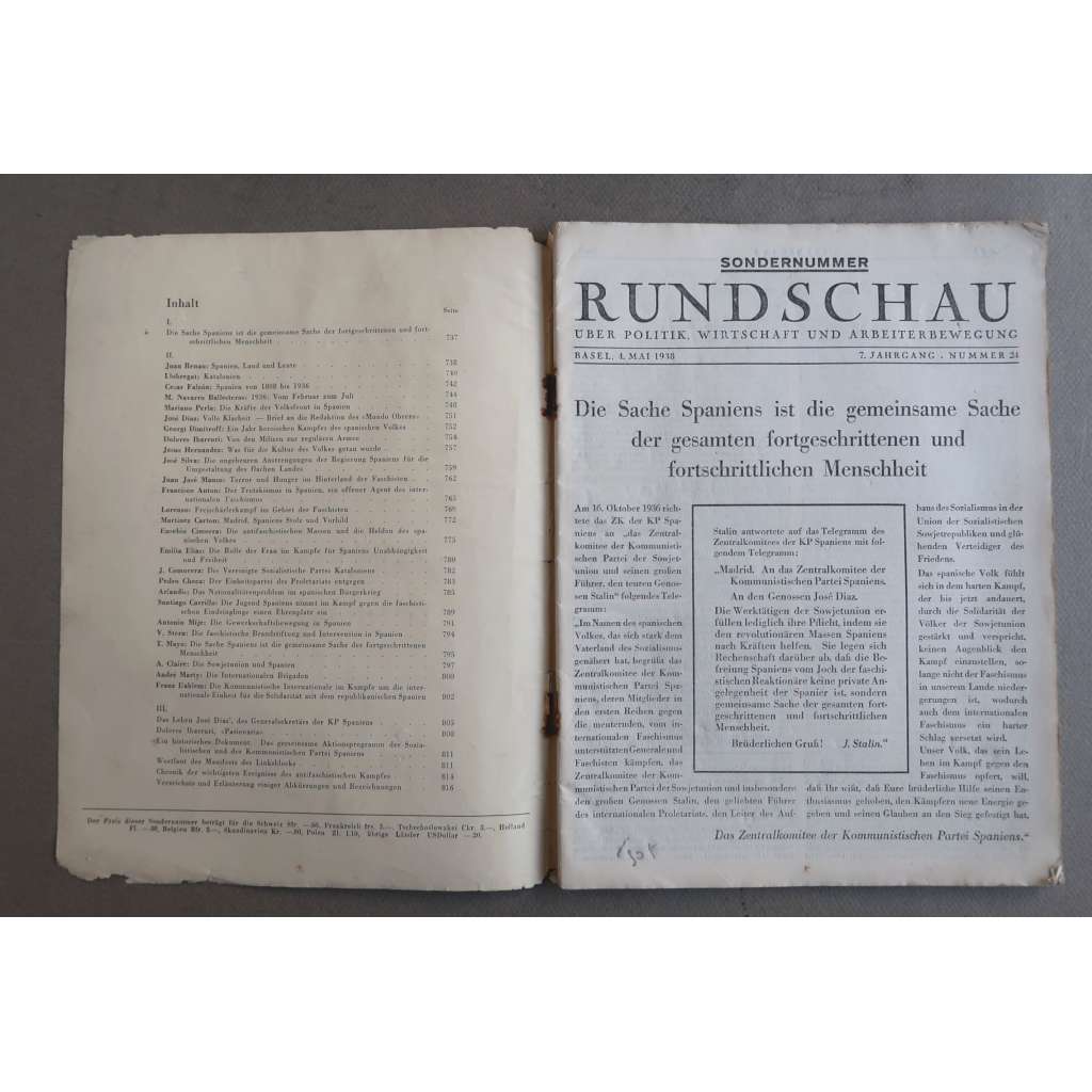 Zvláštní číslo švýcarského komunistického týdeníku Rundschau ze 4. května 1938 věnované Španělsku a Španělské občanské válce.