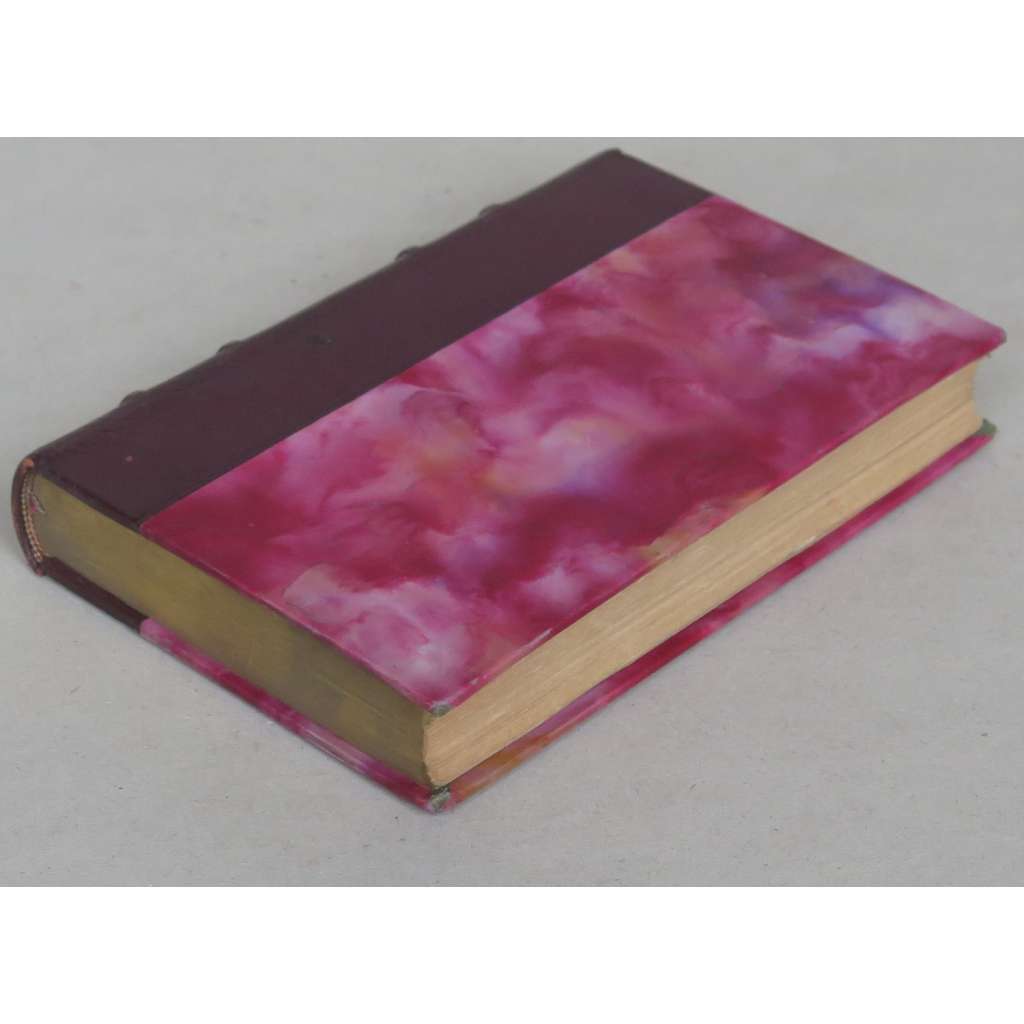Stav knihy: Velmi dobrý stav; desky jen mírně opotřebované, na horní ořízce jsou stopy prachu, na přední předsádce, původní obálce a vnějších stranách je na okraji drobná ztráta či oděrka (viz foto původní obálky).