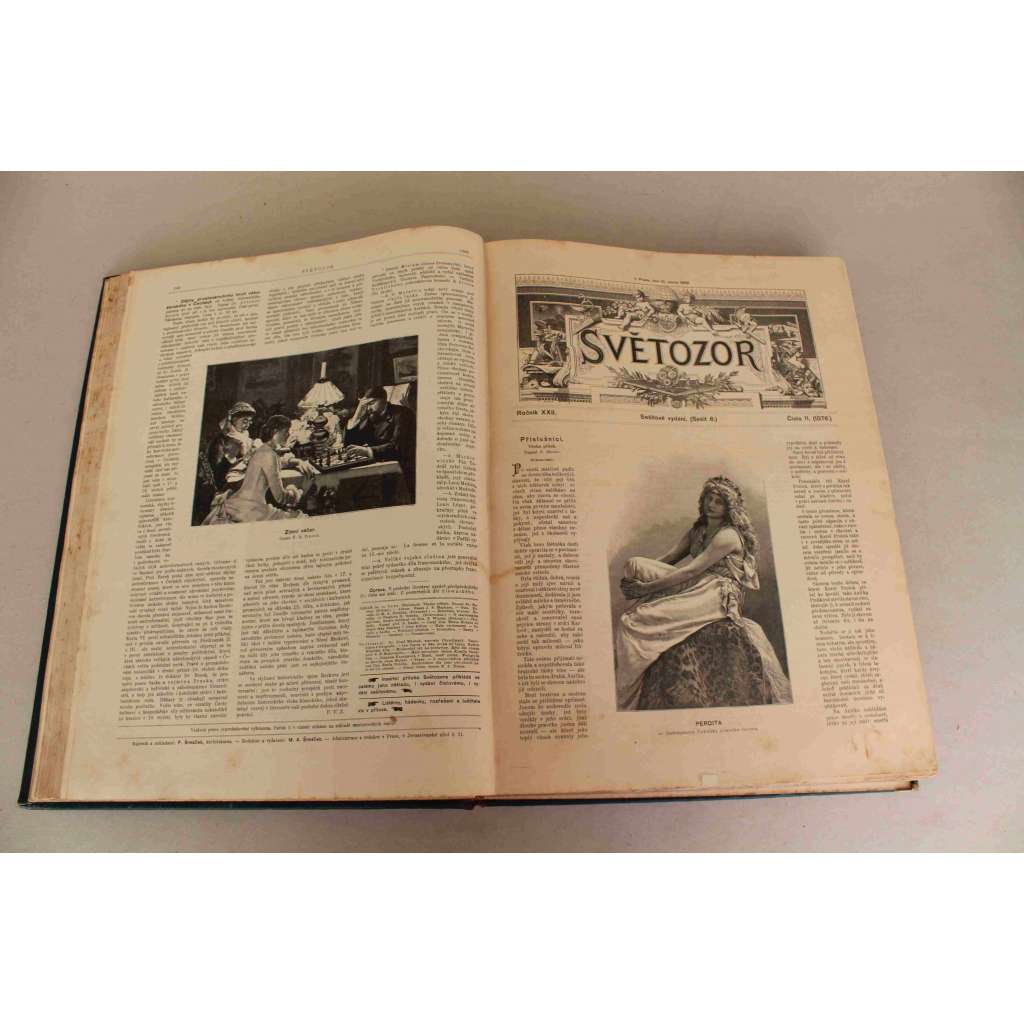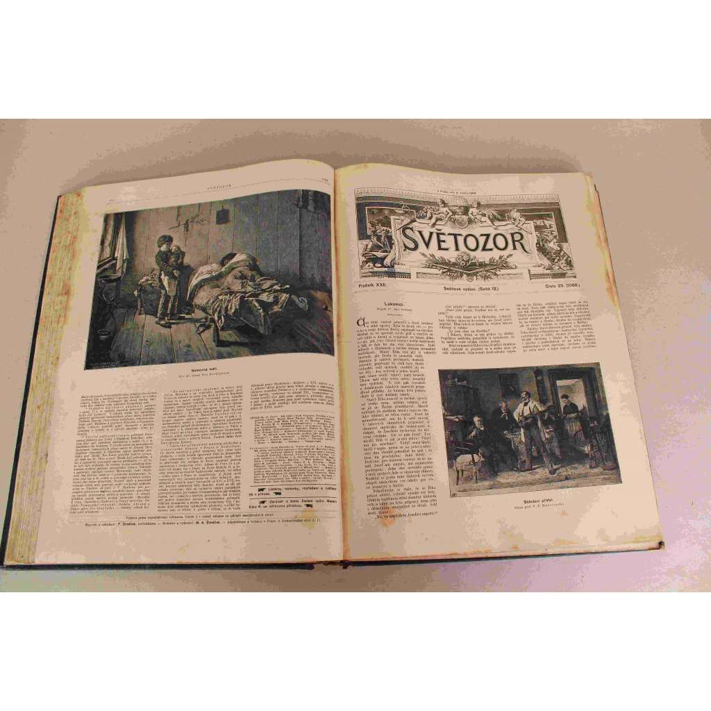 Světozor 1888, roč. XXII (časopis, týdeník, beletrie, poezie, umění, mj. J. S. Machar - Album, Elegie; J. Vrchlický - Sv. Julie; A. Jirásek - Syn ohnivcův; Bída v Praze; Národní kroje; ilustrace Marold, Oliva, Černý)