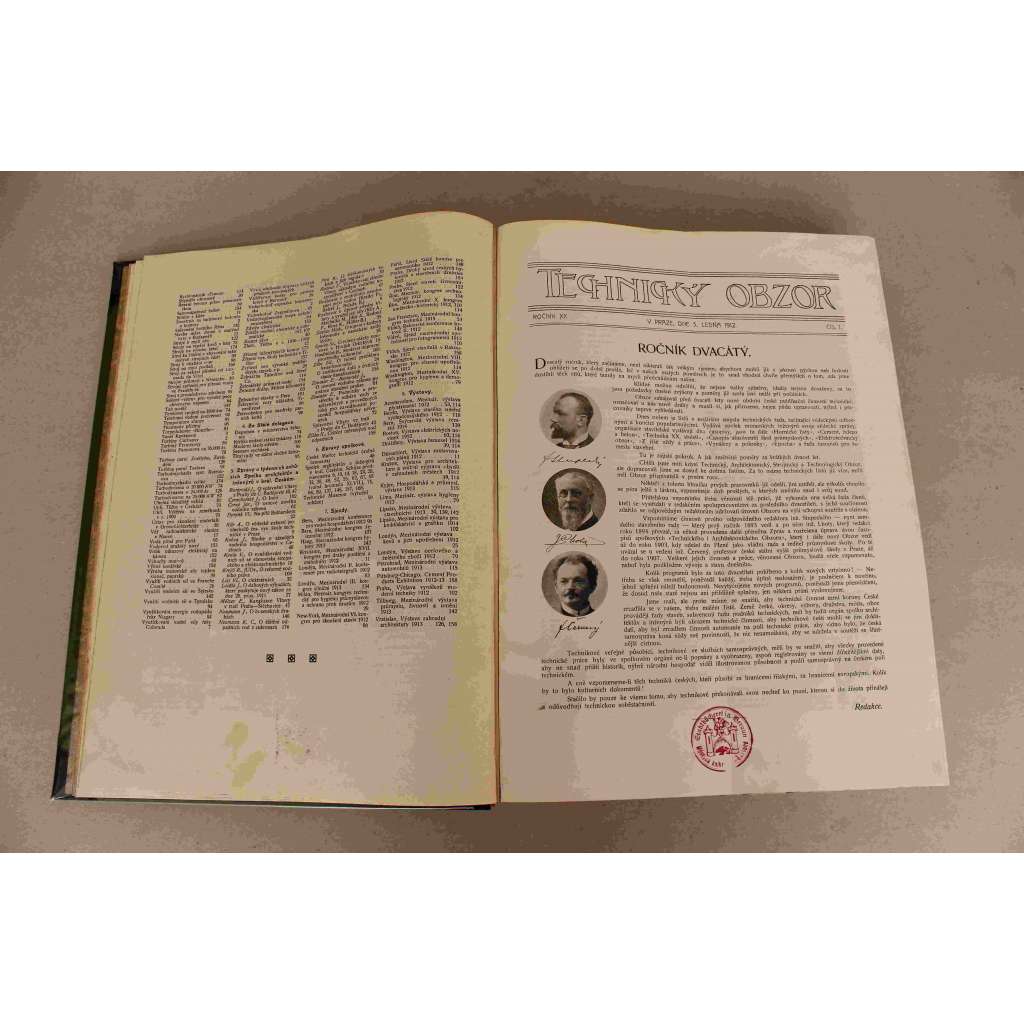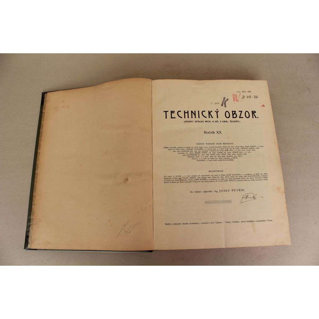 Technický obzor 1912, roč. XX (časopis, technika, doprava, průmysl, mj. O úpravách vodních toků v král. Českém [Malše, Litavka, Labe], Novější soutěže mostní , ledárny v Braníku, Betonový most přes Vltavu - Štvanice)