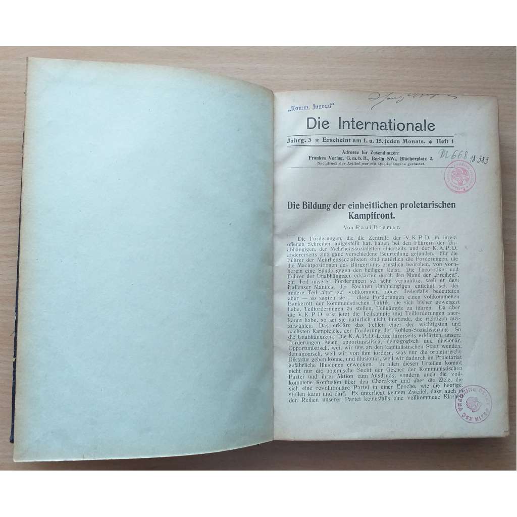 Die Internationale. Zeitschrift für Praxis und Theorie des Marxismus; Jahrg. 3, 1921, Nr. 1-10 [marxismus]