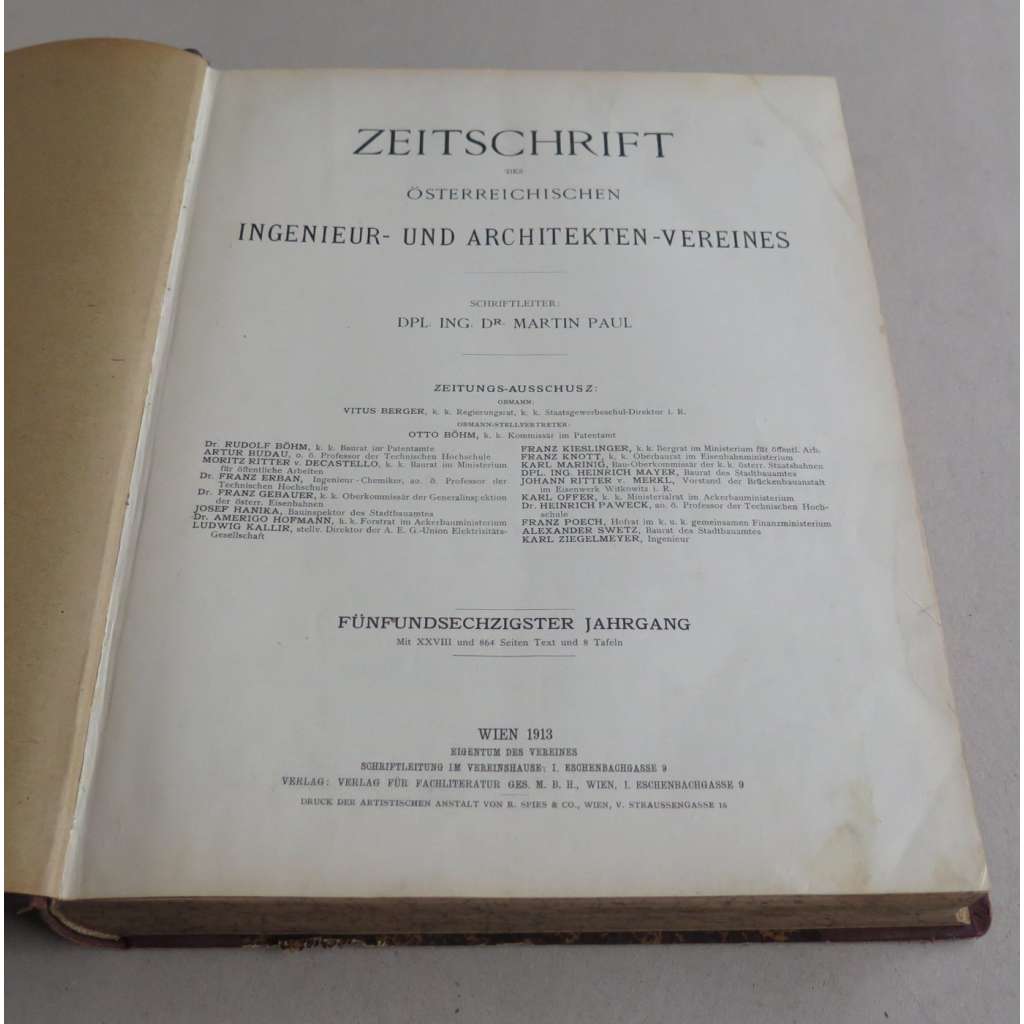 Vydání: Wien: Verlag des Vereins 1913, komplet 52 čísel s obsahem, polokožená vazba se zlaceným hřbetem, mramorované desky a ořízka, XXVIII+864 stran textu s ilustracemi, 5 (z pův. 8) tabulí, 2° (26,5 x 33 cm)