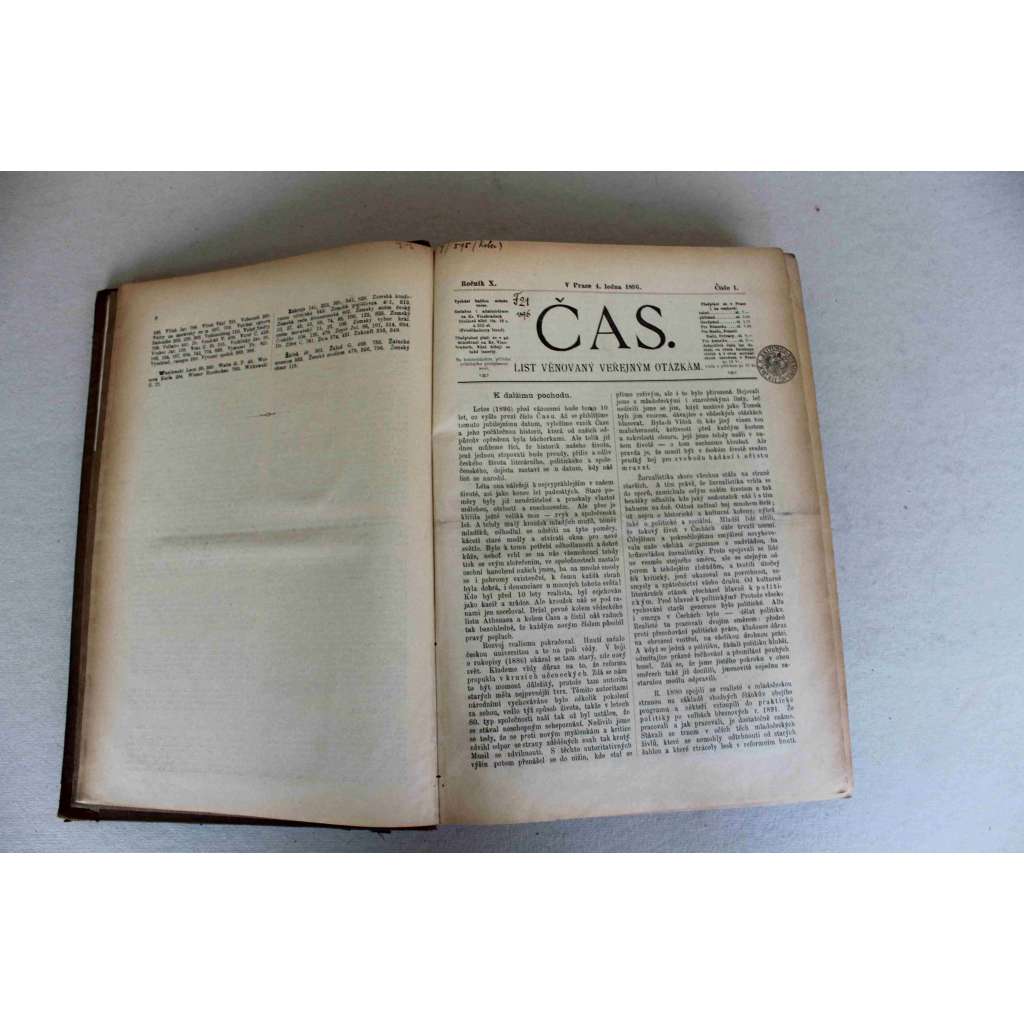 Čas. List věnovaný veřejným otázkám 1896, roč. X. (noviny, deník realistů - Herben, Masaryk, Cyril Dušek ad., mj. Boj o rukopisy, K. H. Borovský, Brno, J. Pekař - Dějiny valdštejnského spiknutí; Ant. Dvořák)