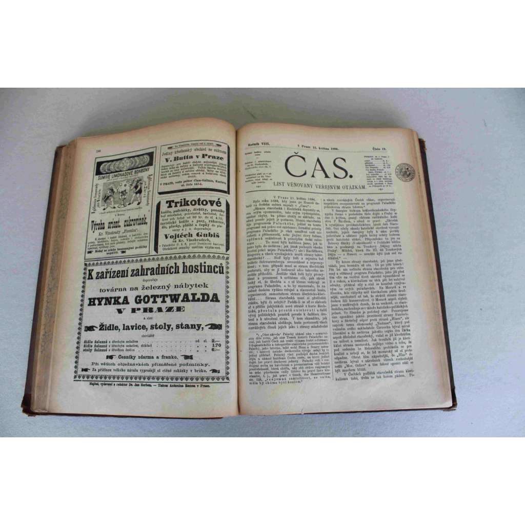 Čas. List věnovaný veřejným otázkám 1894, ročník VIII (noviny, deník realistů - Herben, Masaryk, Cyril Dušek ad., mj. Naše záložny, F. L. věk - Jirásek, Literární hnutí v Norsku [Ibsen, Björnson, Hamsun], Matice Česká, Sionismus)