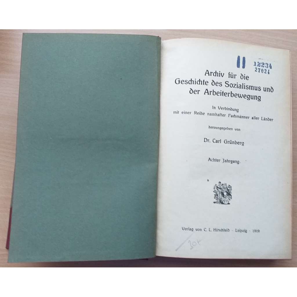 Archiv für die Geschichte des Sozialismus und der Arbeiterbewegung; Achter Jahrgang, 1919 [socialismus]