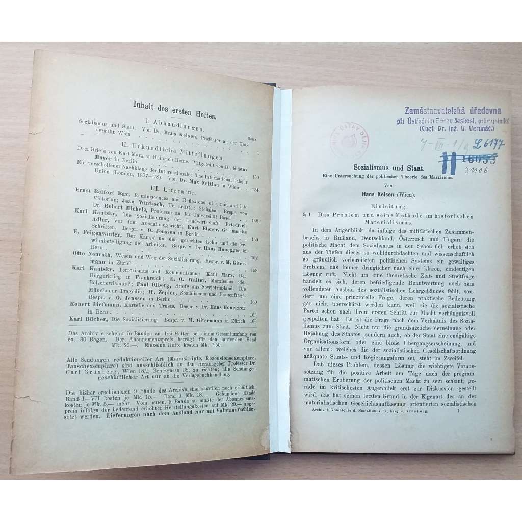 Archiv für die Geschichte des Sozialismus und der Arbeiterbewegung; Neunter Jahrgang, 1. Heft, 1920 [socialismus]