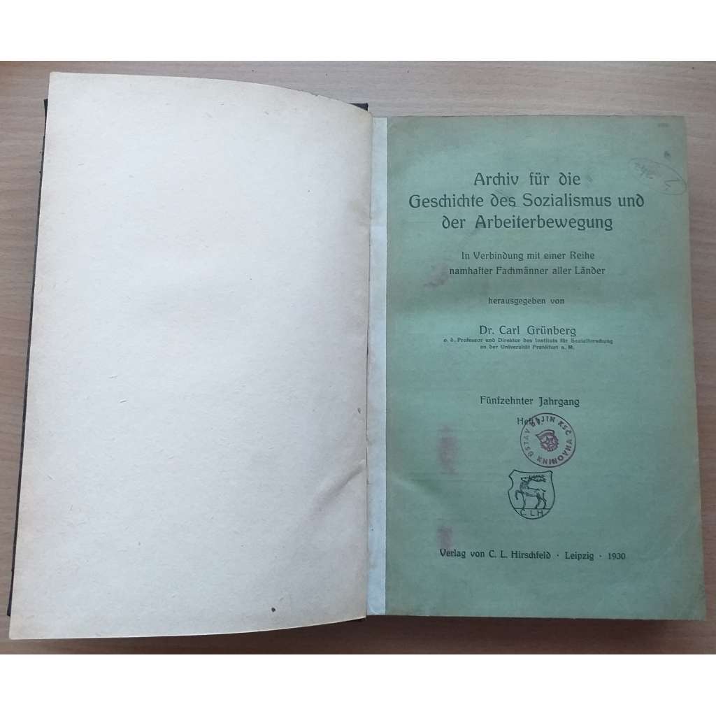 Archiv für die Geschichte des Sozialismus und der Arbeiterbewegung; Fünfzehnter Jahrgang, Hefte 1+2, 1930 [socialismus]
