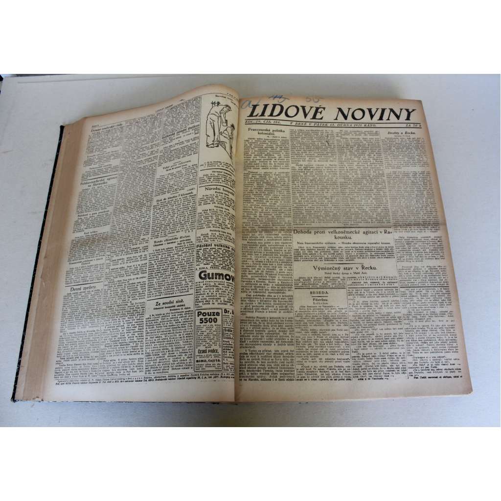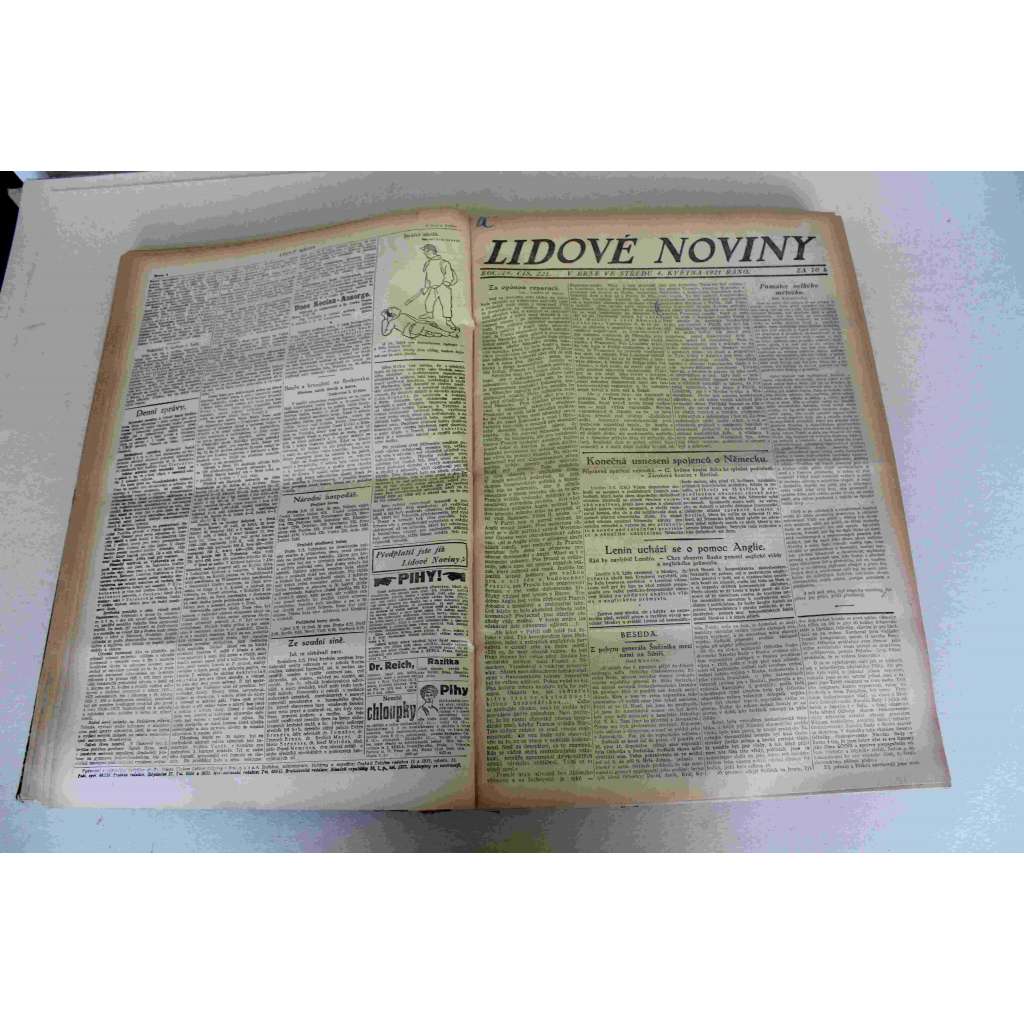 Lidové noviny 1921, roč. 29 (duben-červen) (deník, první republika, mj. Brněnské výstavy, Konec Karlova dobrodružství [císař Karel I.], Čapek - RUR, Napoleon Bonaparte 5.5.1821; Sbližování Česko-polské, Vleklá krise)