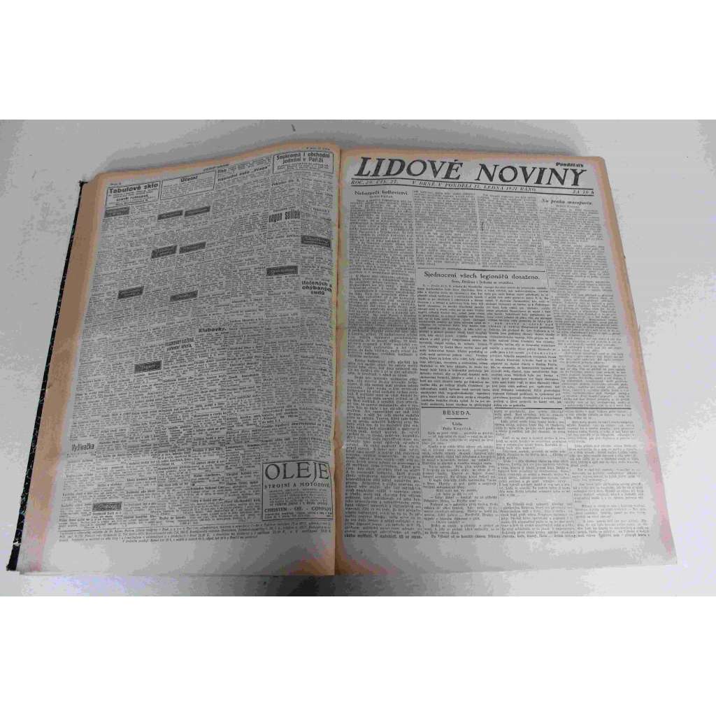 Lidové noviny 1921, roč. 29 (leden-březen) (deník, první republika, mj. Masaryk o bolševictví, Ernest Denis zemřel, Rakousko před úpadkem, Itálie anektovala Zadar, Politická nemov v Polsku [Pilsudski], Rusko a Anglie)