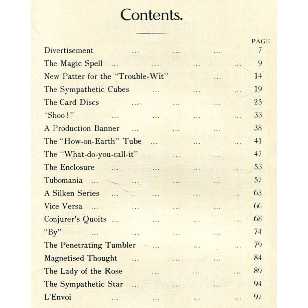 Sbírka kouzelnických triků od tehdy známých kouzelníků; viz naskenovaný obsah. Ilustrováno.
