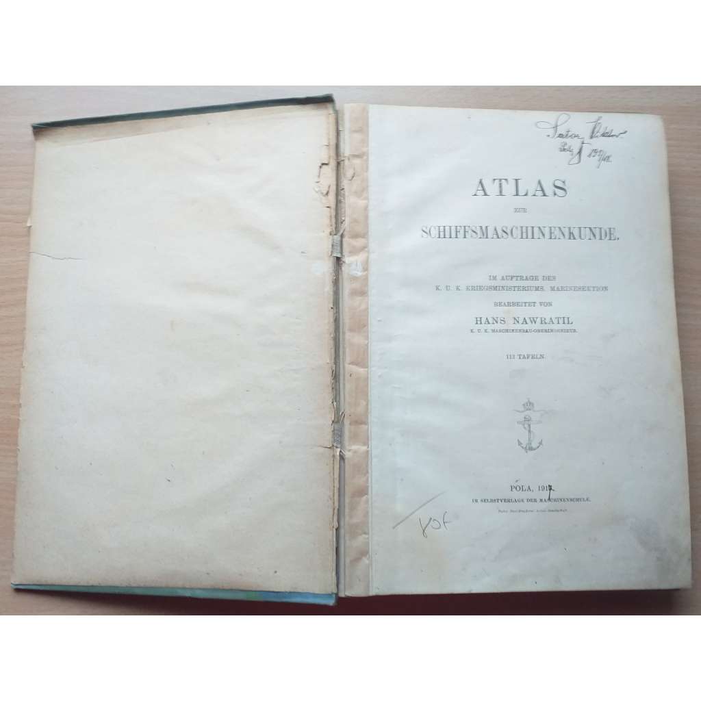 Vydání: Pola: vlastní vydání Strojírenské školy 1917. Pův. plátěná vazba, 112 tabulí, 4° (19 x 26 cm)