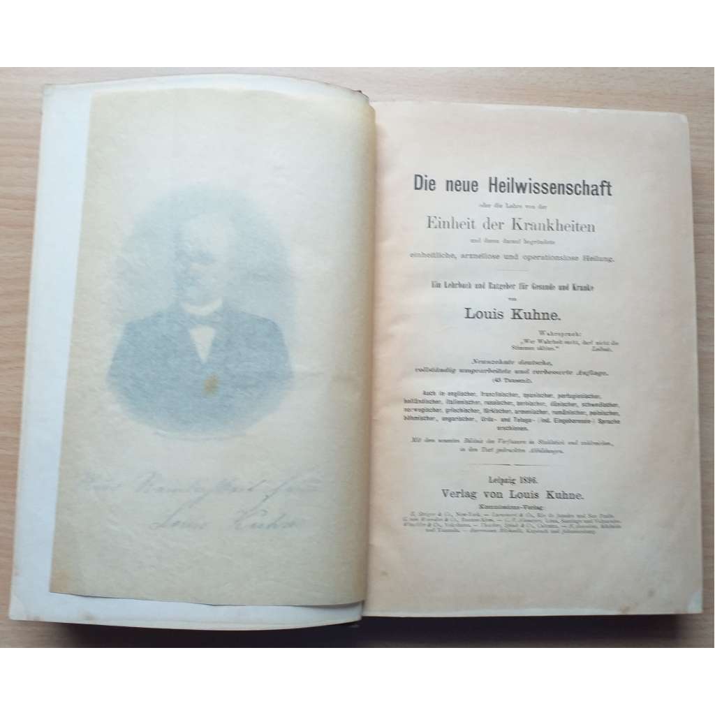 Vydání: Leipzig: Verlag von Louis Kuhne 1896. Pův. plátěná vazba se zlaceným titulem na hřbetu a přední desce, zdobenou ořízkou a předsádkou a frontispisem s portrétem autora, 482 stran s černobílými obr., 4° (16 x 23cm)