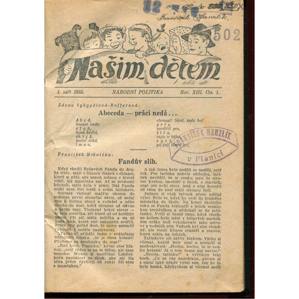 Našim dětem, příloha Národní politiky, ročník XIII., čísla 1-53/1935 a ročník XIV., čísla 1-52/1936 (časopis)