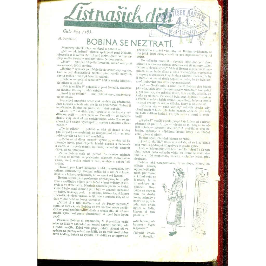 List našich dětí, čísla 653-662, 664-683 (chybí jeden list), 684-690 (chybí jeden list), 699-702 (potrhané str.), 703, 704, 691-695 (potrhané stránky) 696, 697, 706, 705, 707-724 (2 nečíslované časopisy), 734-738, 328\)2 nečíslované čas.), 727, 729, 730 (3 nečíslo. čas. - chybí list), 327, 331, 331, 333-353, 355-377, 379-476 (nečíslovaný), 477 a 478.
