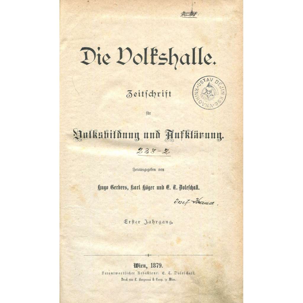 Vydání: Wien: 1879, váz., [4]+420 s., 8° (15 x 23 cm)