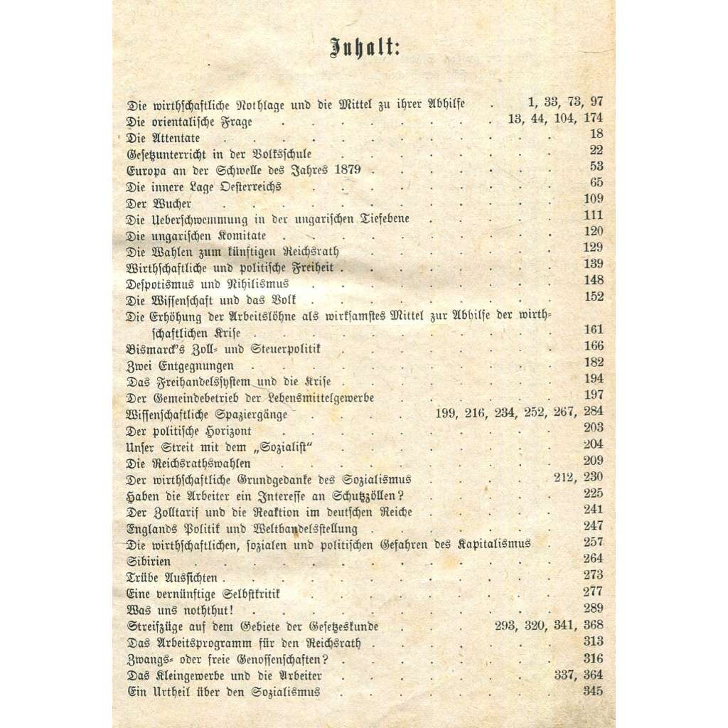 Kompletní první ročník vídeňského socialistického časopisu z dob počátků dělnického hnutí v Rakousku-Uhersku. Časopis se věnoval politice, ekonomickým otázkám, literatuře a obecně osvětě dělnictva. Viz naskenovaný obsah ročníku. Svazek obsahuje čísla 1 až 18.