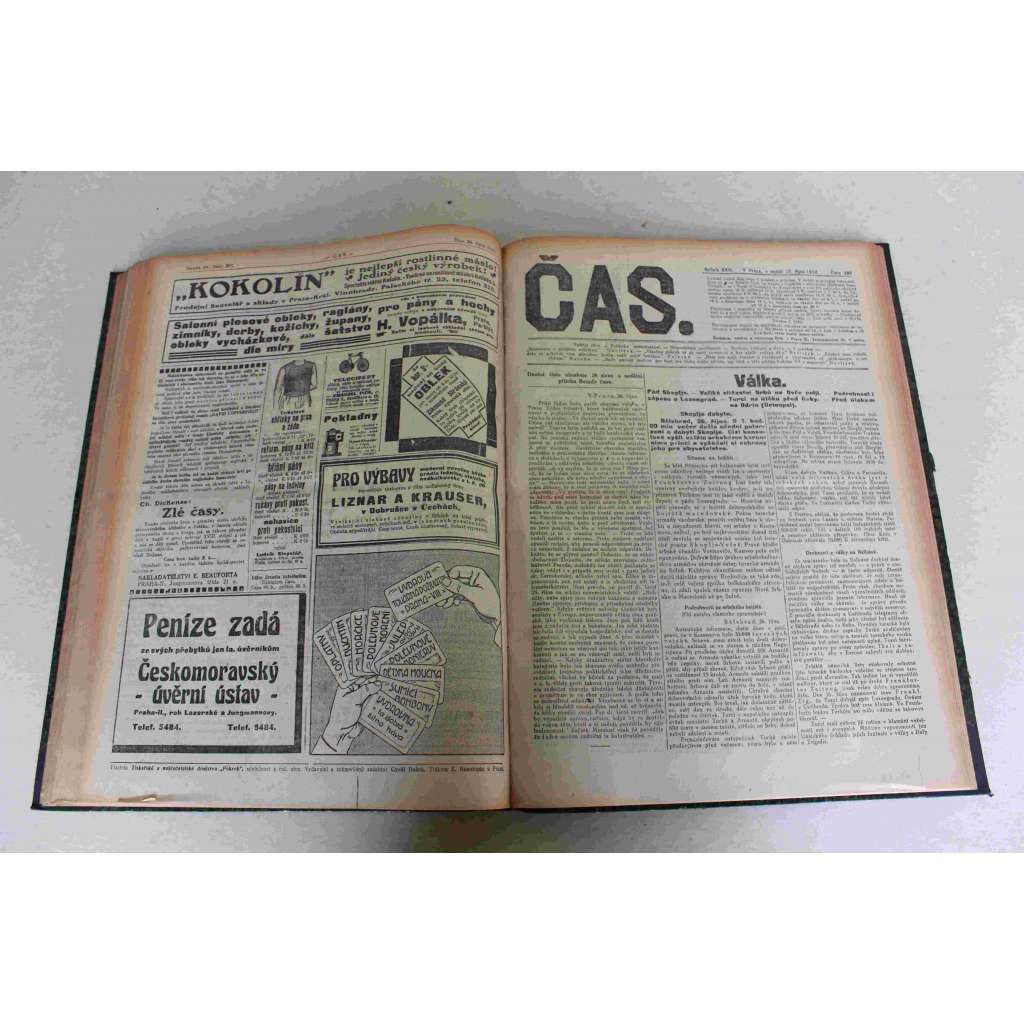 Čas. List věnovaný veřejným otázkám (říjen) 1912, ročník XXVI [noviny, deník realistů - Herben, Masaryk, Cyril Dušek ad., mj. Mobilisace na Balkáně, Balkánské války, Nový pražský vodovod, Válka Itálie s Tureckem, Výstava Sursum)