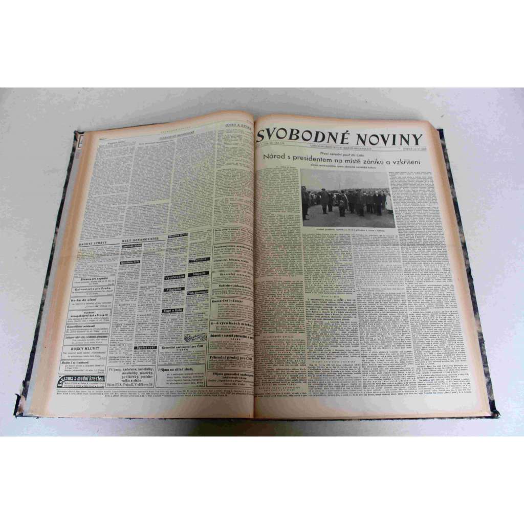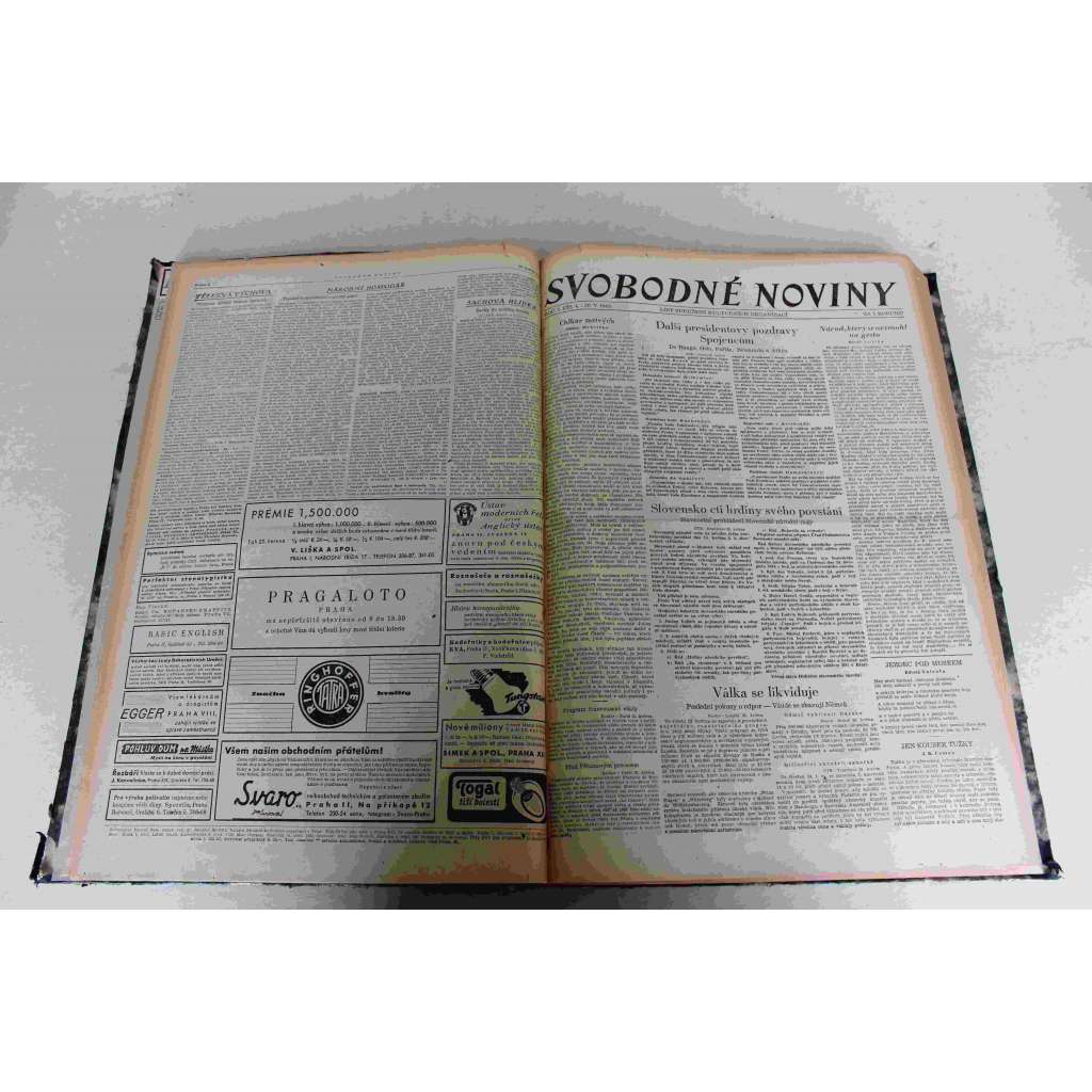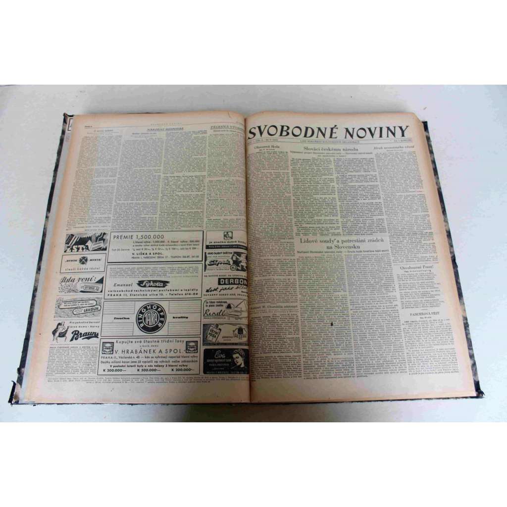 Svobodné noviny 1945, roč. 1 (květen-září) (deník, pův. Lidové noviny, druhá světová válka, mj. Rudý prapor nad Berlínem, Dönitzova vláda už neexistuje, Presidentův zápas a vítězství [Beneš], Lidice, Vysoké školy se otevírají, K. H. Frank zase v Praze)