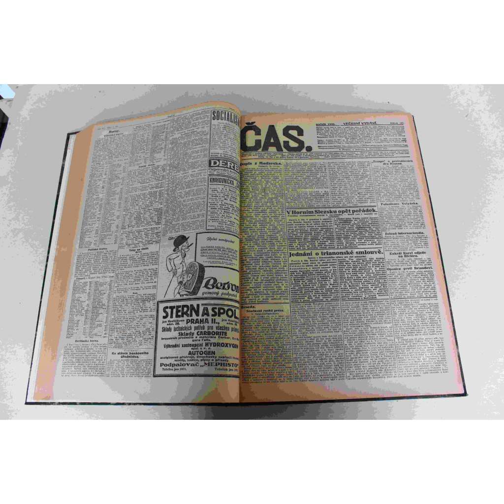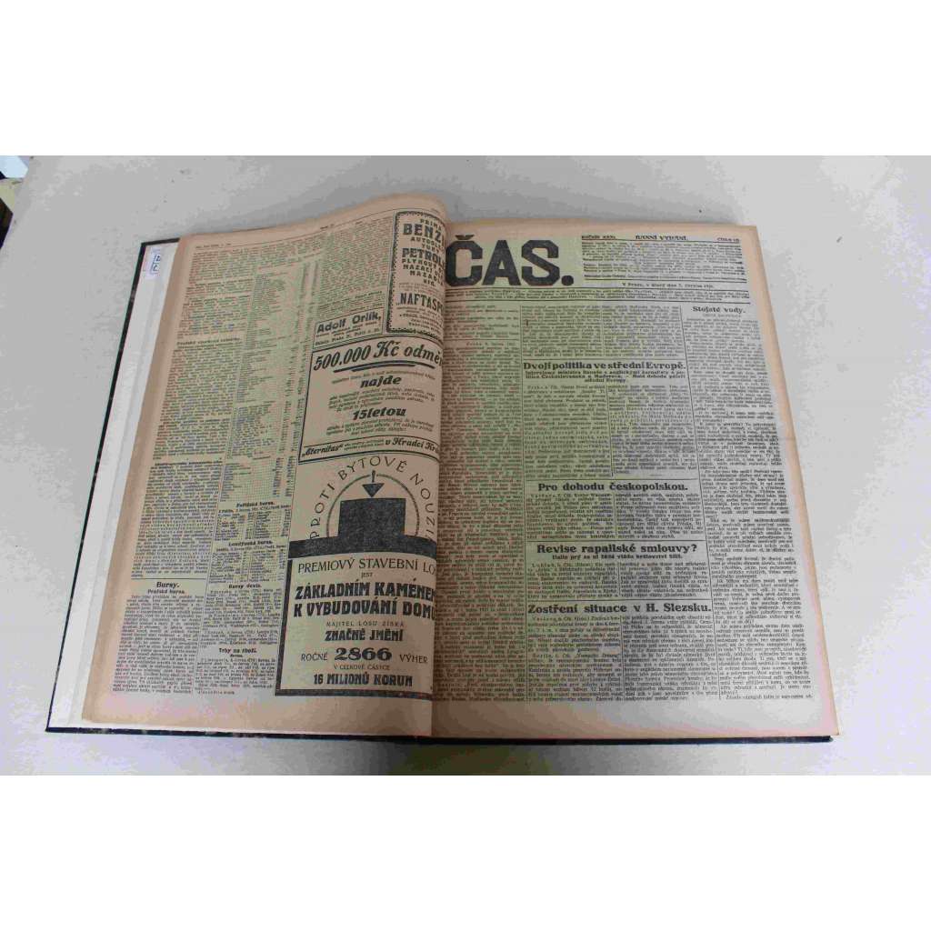 Čas. List věnovaný veřejným otázkám 1921 ročník XXXI (červen-čevenec) [noviny, deník realistů - Herben, Masaryk, Cyril Dušek ad., mj. Stanovení hranic českopolských, Trianonský mír, Systém smluv Malé dohodě, Lenin, Bolševici a kemalisté)