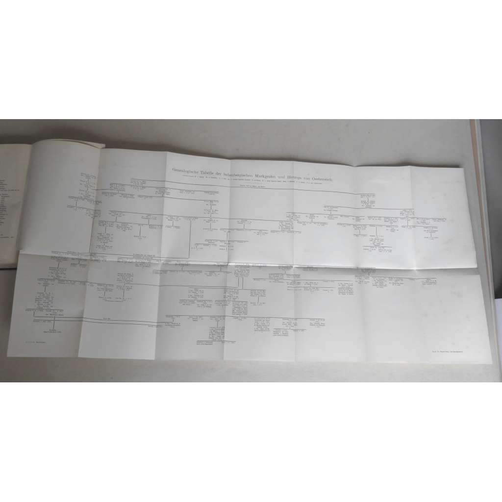 Dobová celoplátěná vazba se slepou ražbou na předních i zadních deskách, zlacená ražba na hřbetu, mramorovaná ořízka, XXIV+724 stran, vzadu složená tabule s rodokmenem Babenberků, markrabat a vévodů rakouských, 8° (16 x 23 cm).