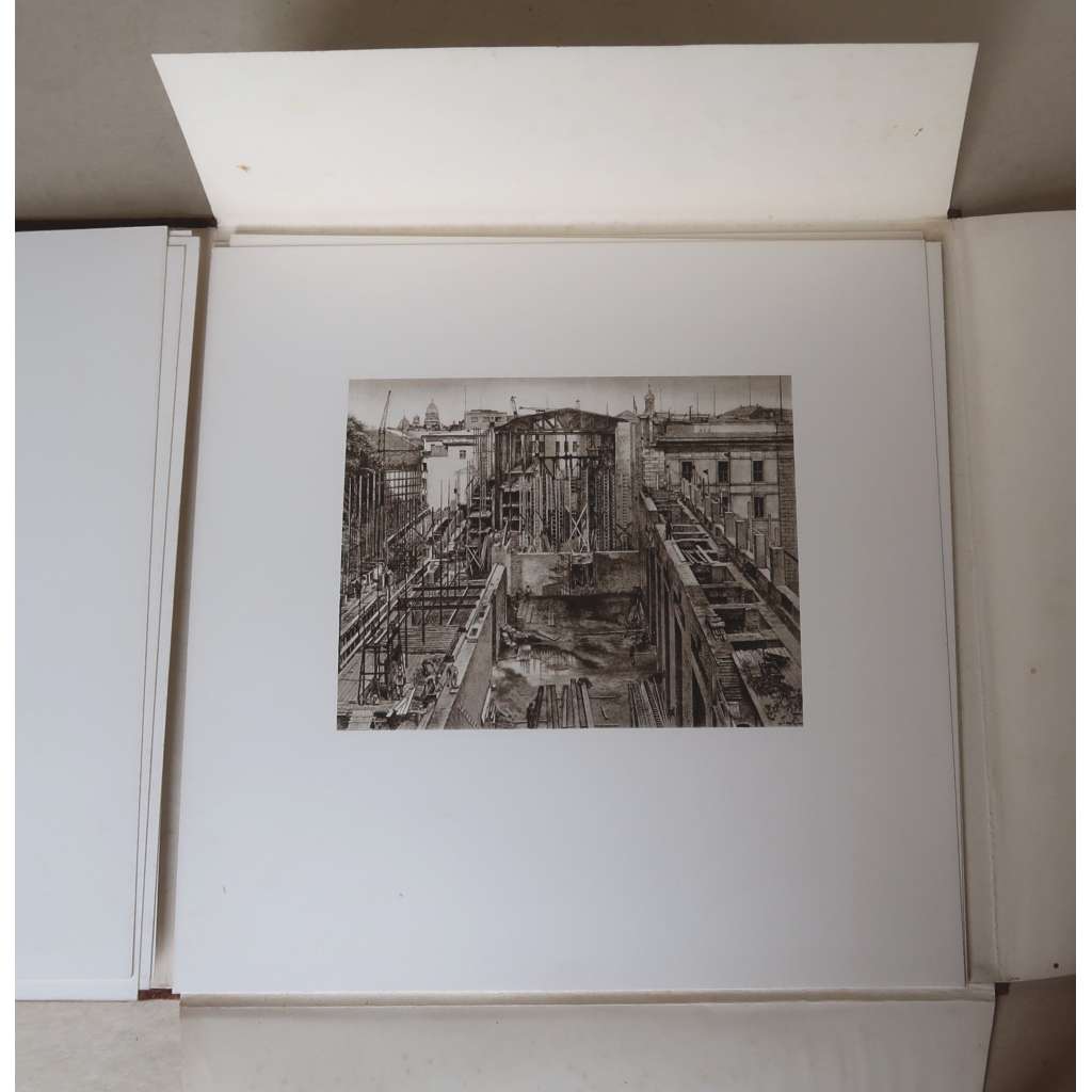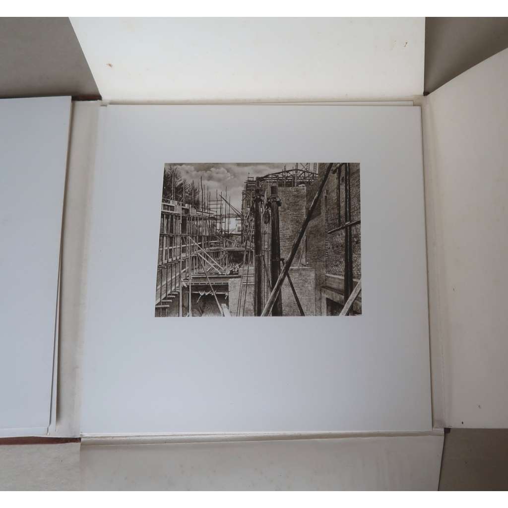Původní celoplátěná vazba se slepou a zlacenou ražbou na předních deskách, uvnitř 10 volně vložených listů v orvíracích deskách - 2 listy s tituly, 1 list s portrétem A. Hitelra, 7x reprodukce kreseb Curta Winklera z průběhu stavby, čtvercový formát - rozměry desek 25 x 25 cm, rozměry tabulí 23 x 23 cm.