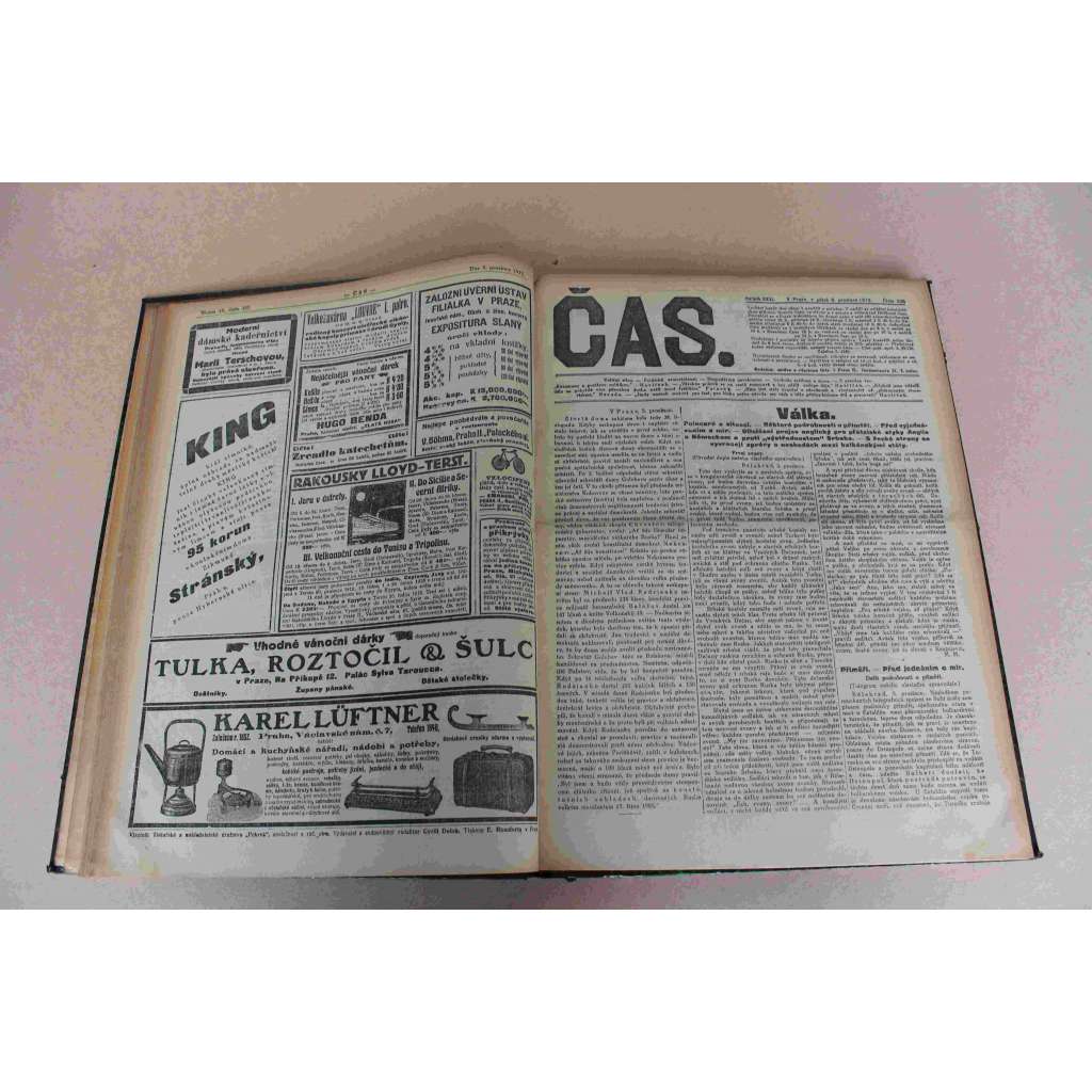 Čas. List věnovaný veřejným otázkám 1912, roč. XXVI (prosinec) (noviny, deník realistů - Herben, Masaryk, Dušek, mj. Hnutí v Dalmácii, Balkánské války, Rakousko-Uhry a Srbsko, Cesty prof. Masaryka do Bělehradu)