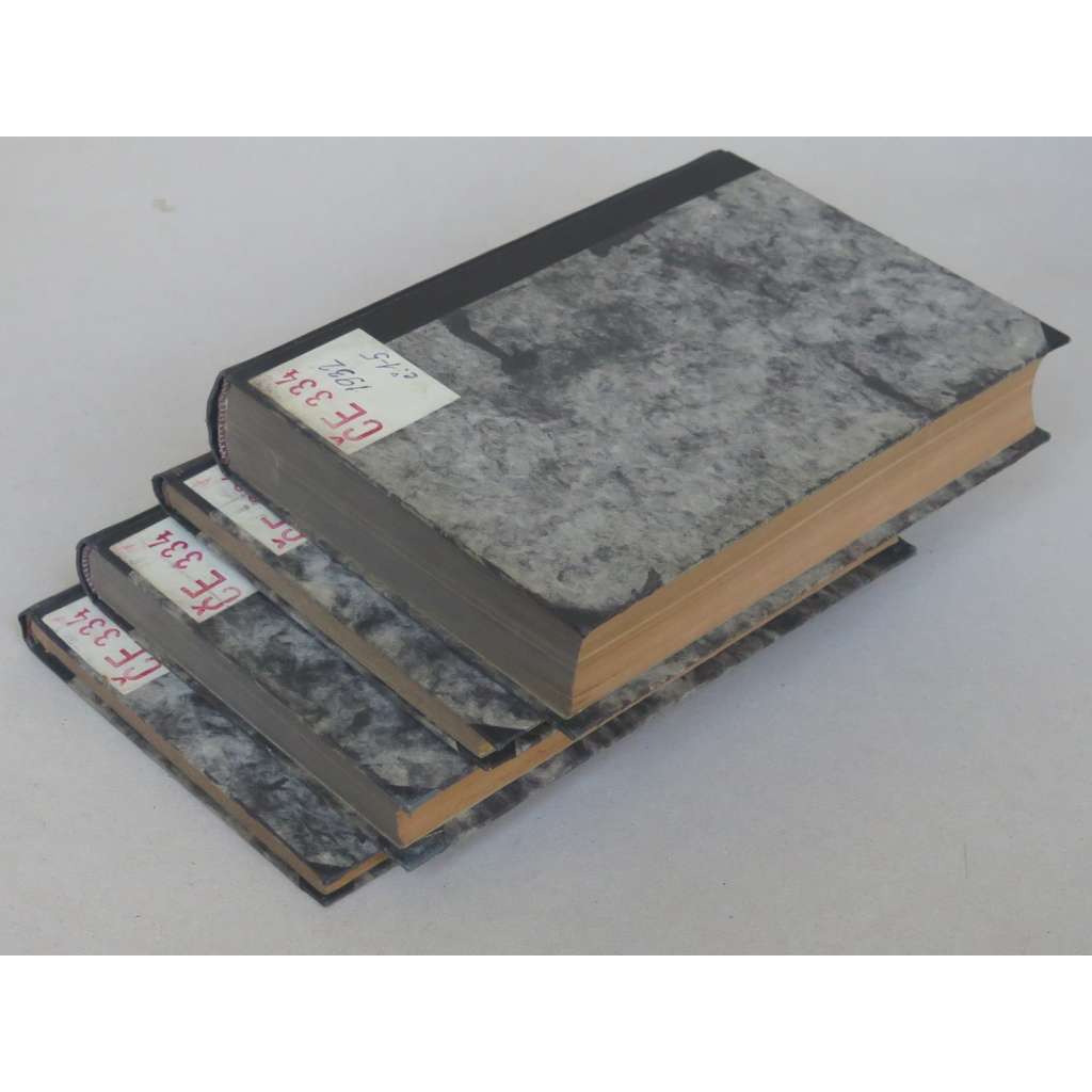 Stav knihy: Dobrý stav; desky jen mírně opotřebované, na zadních deskách je nalepen štítek, předsádky s razítky a signaturou, na původních obálkách a několika stránkách jsou další razítka knihoven či signatury psaná perem, na dvou titulních stranách a jedné původní obálce je nalepen štítek.