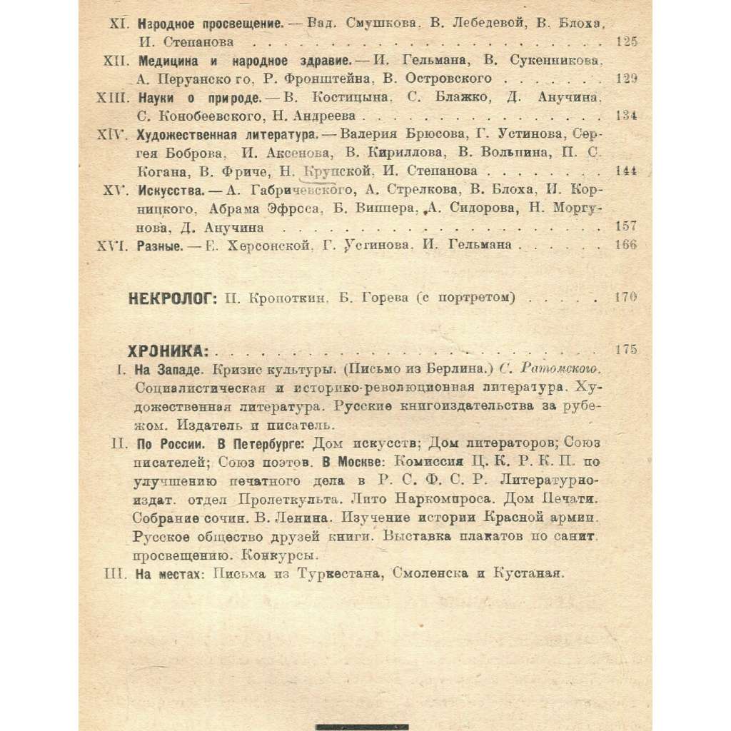 Kompletní první ročník významného sovětského časopisu zaměřeného na literaturu, umění a literární kritiku. Viz naskenovaný obsah čísla 1. Jednotlivá čísla jsou datována květen–červenec (č. 1), srpen–říjen (č. 2) a listopad–prosinec (č. 3). Číslo 2 obsahuje tabuli s barevným portrétem Alexandra Bloka, číslo 3 obsahuje portréty Dostojevského a Někrasova a 11 barevných reprodukcí dřevorytů Ivana Pavlova (1872–1951), významného ruského grafika.