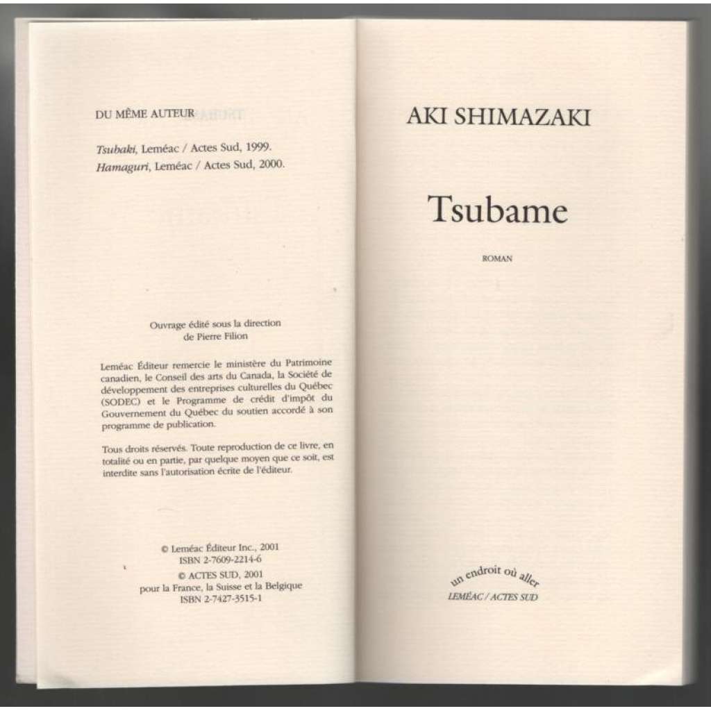 Vydání: Québec: Leméac Éditeur Inc. 2001. Pův. brožovaná vazba s titulem na hřbetu a přední desce, 123 stran, 8° (10 x 19 cm)