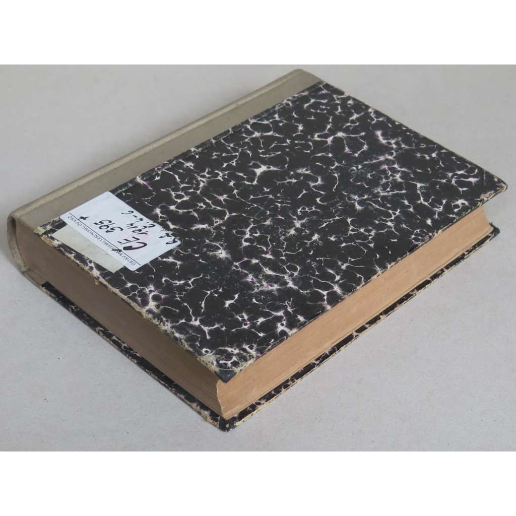 Stav knihy: Dobrý stav; desky opotřebované, plátno zašpiněné, se skvrnou, na obou deskách je nalepen štítek, na přední předsádce jsou razítka, signatury a nalepená kapsa s kartou knihovny, na několika stránkách jsou další razítka a signatury, předsádky a několik listů s ohmatanými rohy či mírným opotřebením.