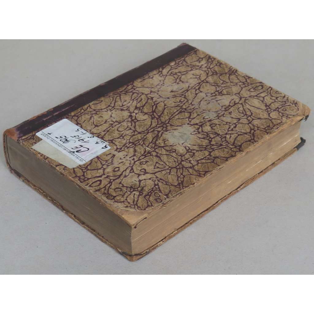 Stav knihy: Dobrý stav; desky opotřebované, rohy desek naražené a odřené, na zadní desce je nalepen štítek, na přední předsádce a některých stranách jsou razítka a signatury, předsádky a několik listů zažloutlých, s ohmatanými rohy či mírným opotřebením.
