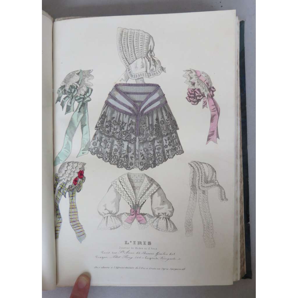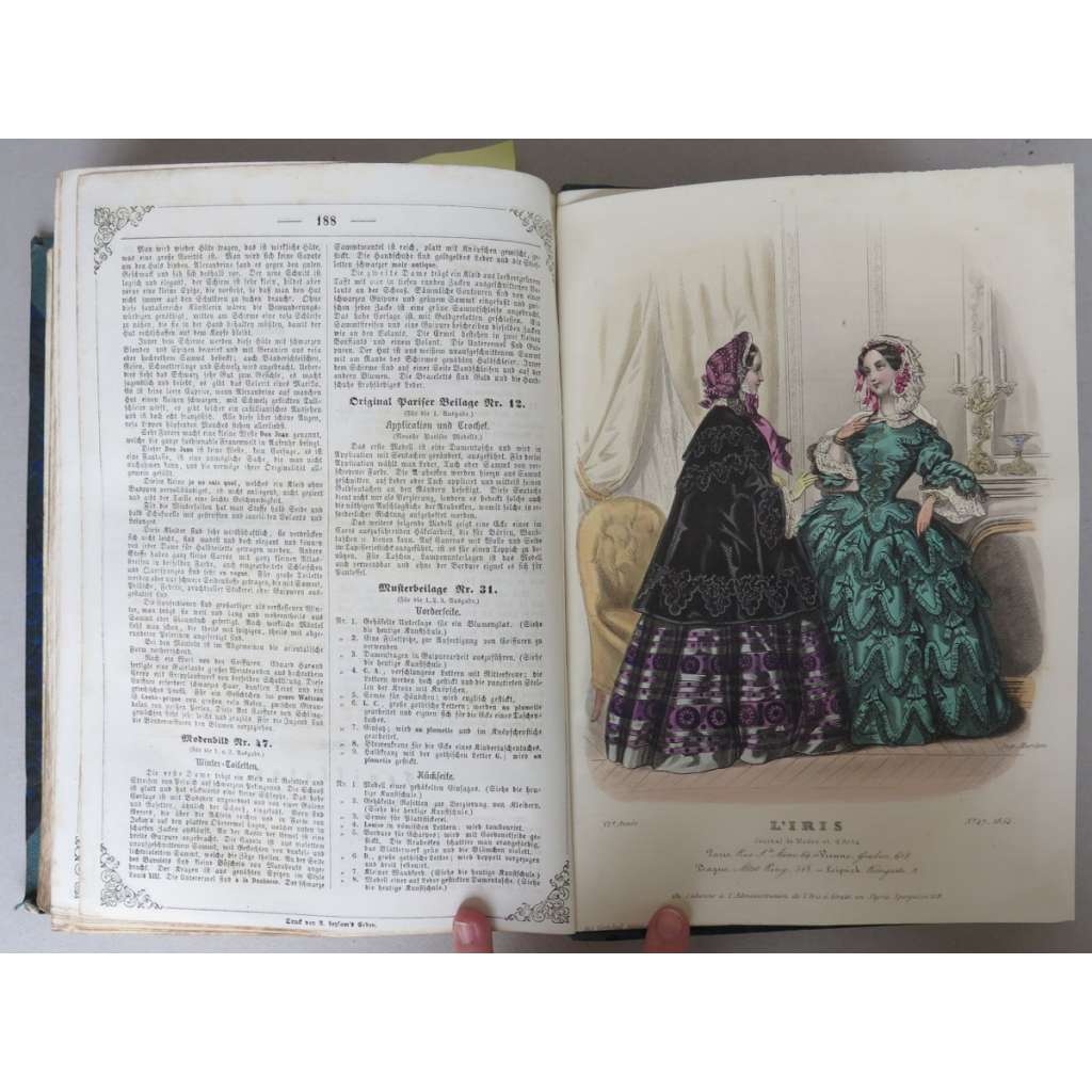 Vydání: Graz: Verlag der Administration der IRIS (Eduard Ludewig) 1854, poloplátěná dobová vazba se zlaceným hřbetem, mramorované desky a ořízka, 192 stran s 61 barevných litografií: 47 litografií s módou, 1 skládaná příloha se vzory, velké 4° (20 x 28 cm)
