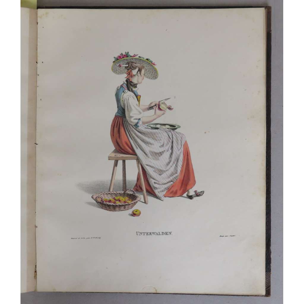 Vydání: Berne: Imprim. Lith. de Haller, dobová poloplátěná vazba se zlaceným hřbetem a dekorativním slepotiskem na deskách, 27 barevných litografií s pův. přední obálkou, 4° (21 x 26 cm)