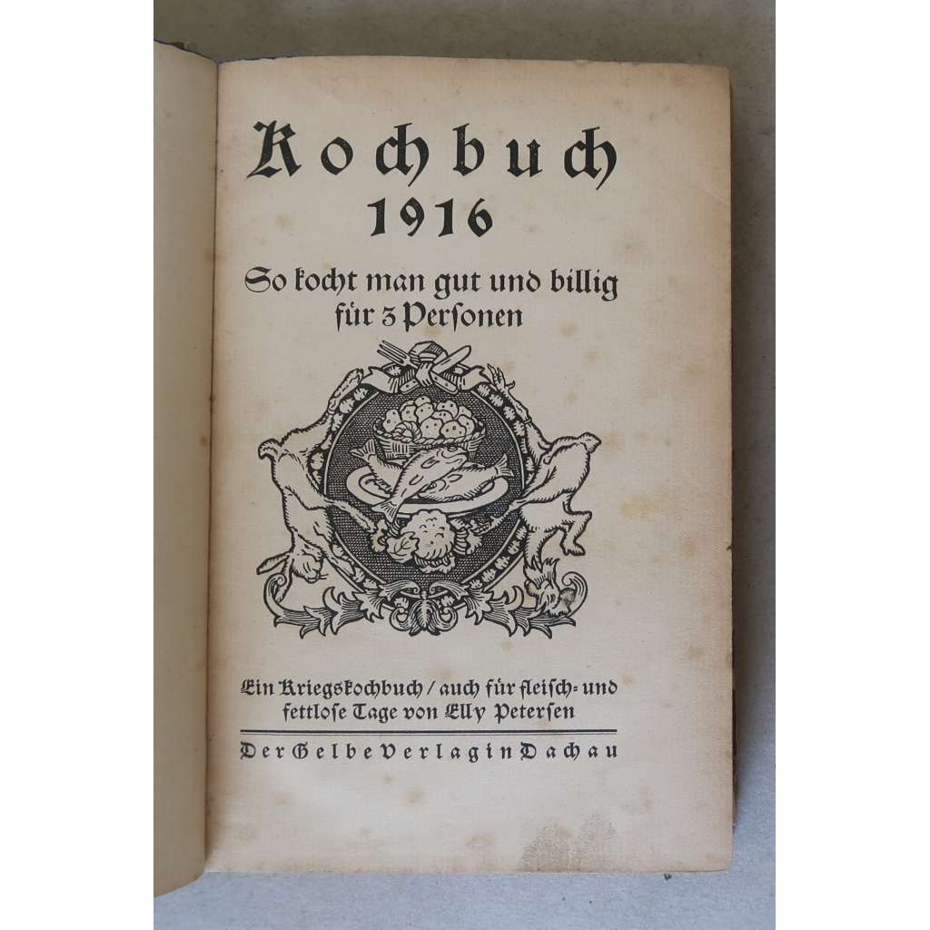 Kochbuch 1916. So kocht man gut und billig für 3 Personen. Ein Kriegskochbuch, auch für fleisch- und fettlose Tage [válečná kuchařka, recepty, rady pro domácnost, levné vaření, mj. bezmasé a netučné pokrmy, 1. světová válka]