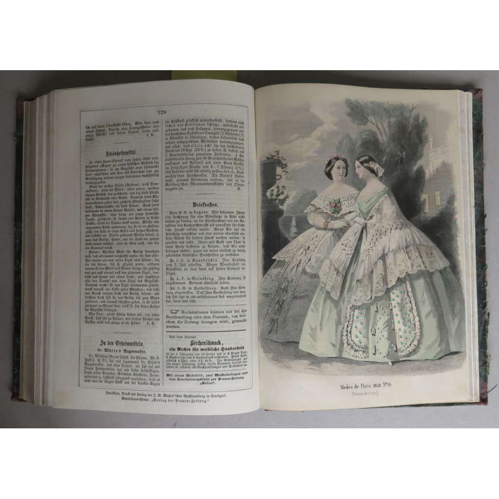 Vydání: Stuttgart: J. B. Metzler'sche Buchhandlung - Verlag der Frauen-Zeitung 1857-1858, poloplátěná dobová vazba se zlaceným titulem na hřbetu, IV+188; IV+188 stran s 45 (z pův. 48) ocelorytů, z toho 4 nekolorované, 3 přílohy, 4° (18 x 24 cm)