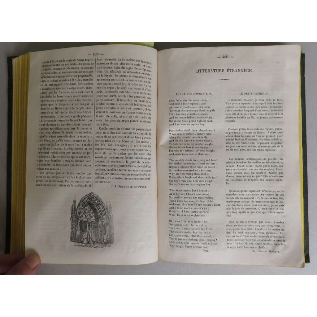 Vydání: Paris: au bureau de journal 1847, dobová celoplátěná vazba se zlaceným štítkem na hřbetu, 384 stran s ilustracemi v textu, 4 kolorované mědiryty s módou, 12 skládaných vzorů, 6 nekolorovaných tabulí, 2 hudební přílohy, 8° (15,5 x 22,5 cm)