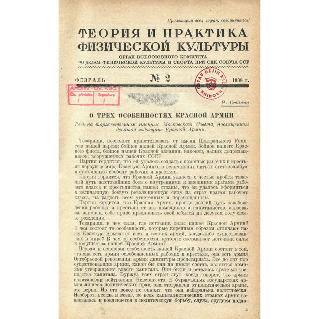 Tři čísla sovětského odborného časopisu zaměřeného na vrcholový sport a tělesnou výchovu; svazek obsahuje čísla 2–4 (únor–duben) z roku 1937. Časopis vycházel jako měsíčník. Ilustrováno.