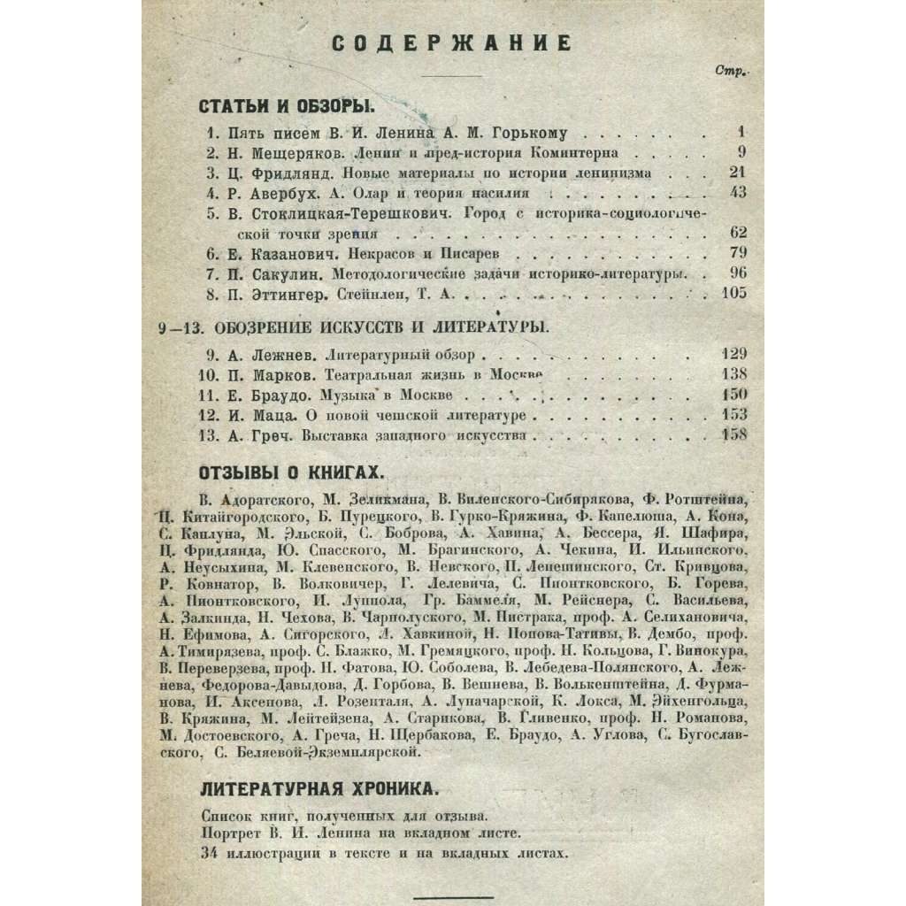 První číslo pátého ročníku významného sovětského časopisu zaměřeného na literaturu, umění a literární kritiku; datováno leden–únor 1925. Viz naskenovaný obsah. Svazek obsahuje tabuli s reprodukcí knižní ilustrace od Théophila Steinlena a v textu další reprodukce jeho prací.