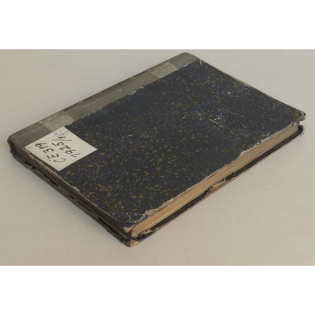 Stav knihy: Uspokojivý stav; desky a plátno opotřebované a zašlé, na zadní desce je nalepen štítek, předsádky s razítky a signaturou, na původní obálce, tabulích a některých stránkách jsou další razítka knihoven či signatura/poznámka, malé množství stránek trochu zvlněných či s bledou skvrnou od vody.