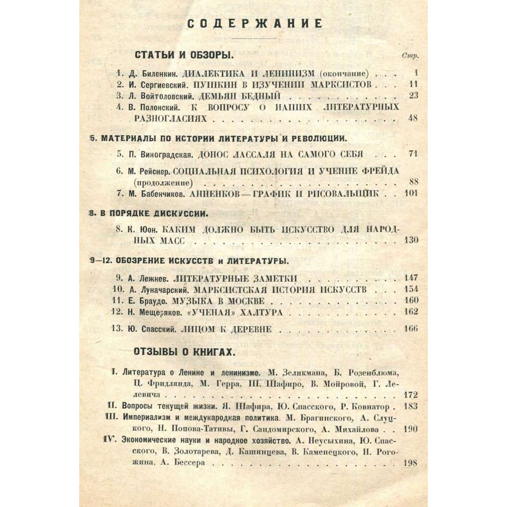 Dvě čísla pátého ročníku významného sovětského časopisu zaměřeného na literaturu, umění a literární kritiku; datována červen a prosinec 1925. Viz naskenované obsahy. Číslo 4 obsahuje množství reprodukcí děl avantgardního umělce Jurije Anněnkova.