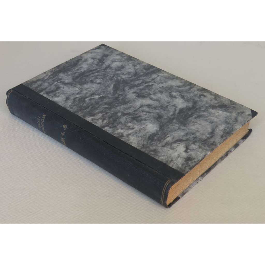 Poloplátěná pevná převazba; bývalý knihovní exemplář. Vevázána je pouze původní obálka čísla 4.