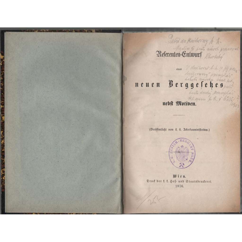 Vydáno císařsko-královským ministerstvem zemědělství. Historický dokument o reformě horního práva v Rakousko-uherské monarchii