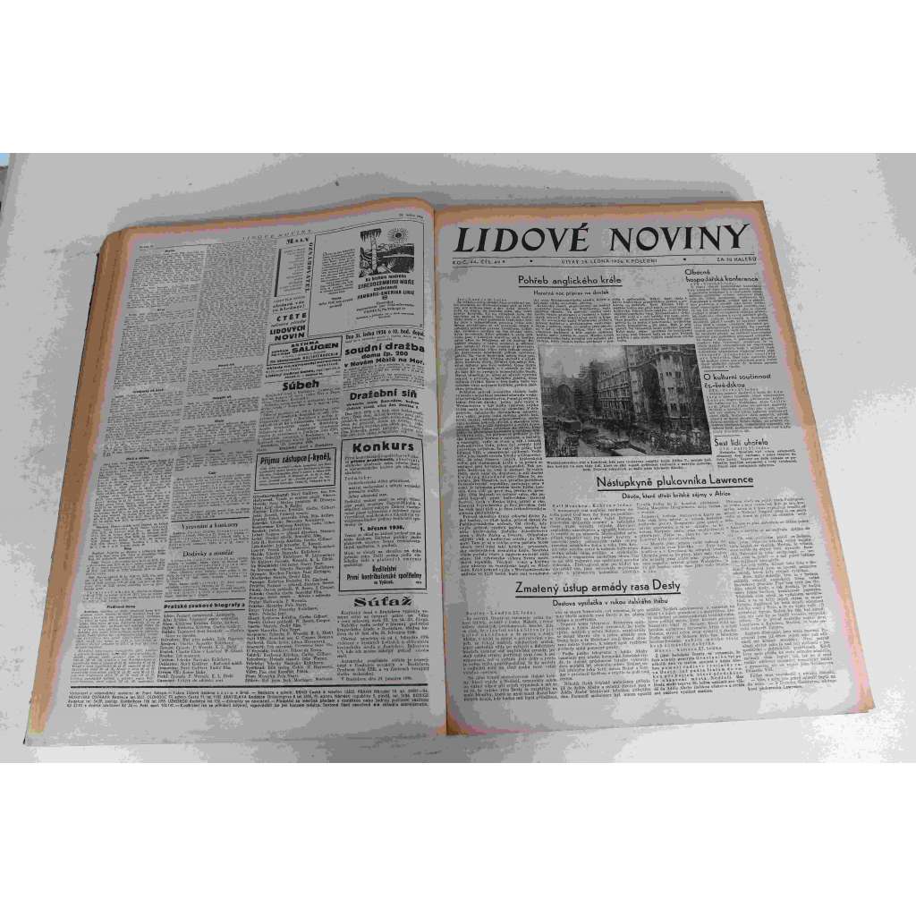 Lidové noviny 1936, roč. 44 (leden-únor) (deník, první republika, mj. Habešsko-italská válka, Německé intriky proti SSSR, Po presidentské volbě [Beneš], Pohřeb anglického krále [Jiří V.], Sonja Henie, Německé zbrojení, Kdo unesl Lindberghova syna?)