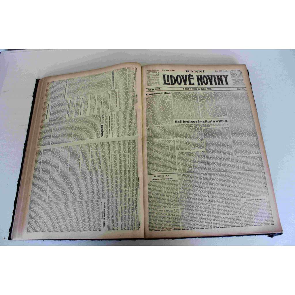 Svázané noviny obsahují čísla od 1.1. do 31.3. 1919; 29.6.-30.6.1919