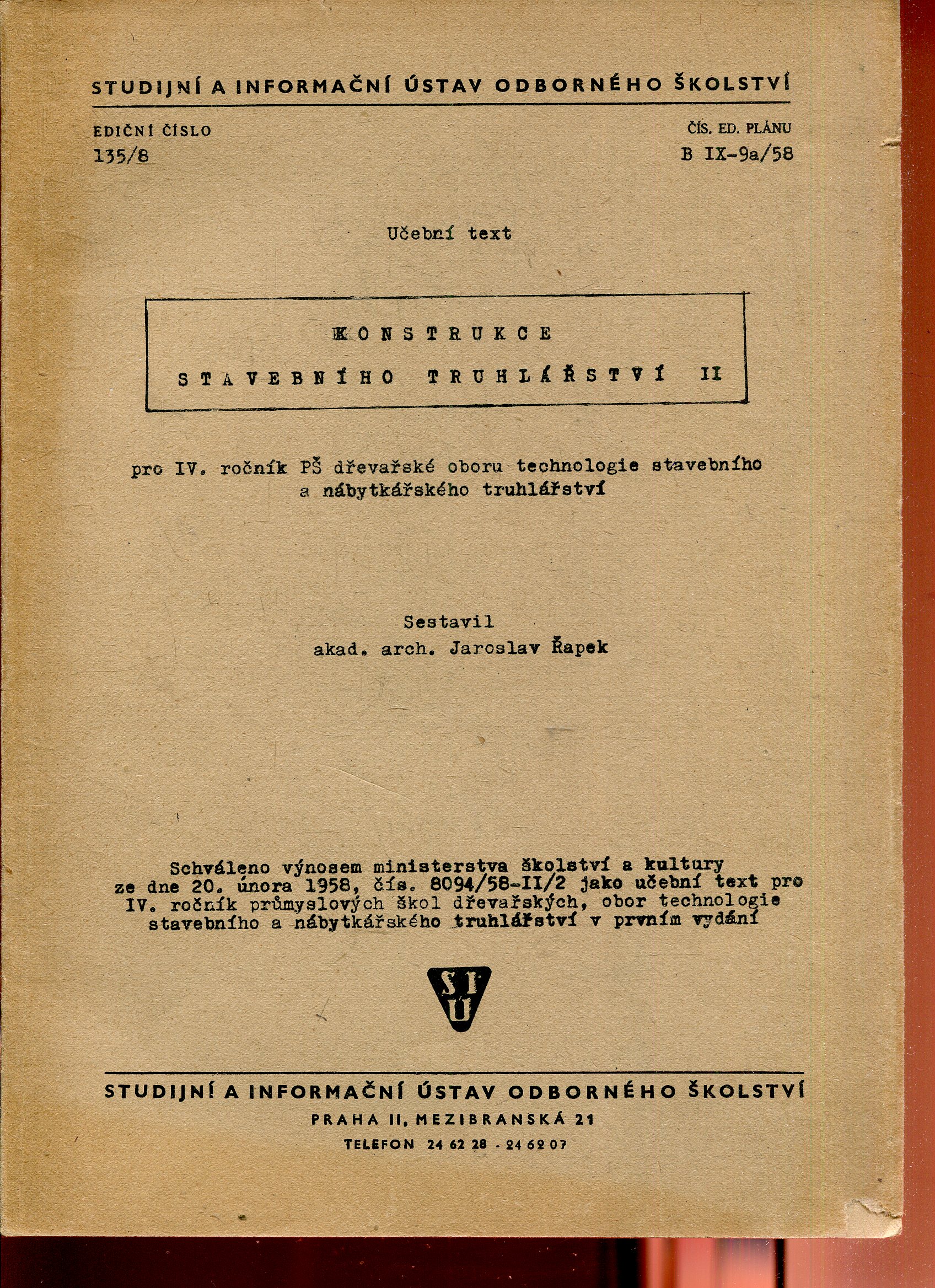 Vydalo SNTL, druhé doplněné vydání, Praha 1979. Celoplátěná vazba s přebalem, 255 stran, velké množství obrazových příloh (322 vyobrazení). Rozměry: 22 x 27 cm.