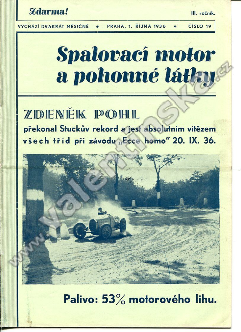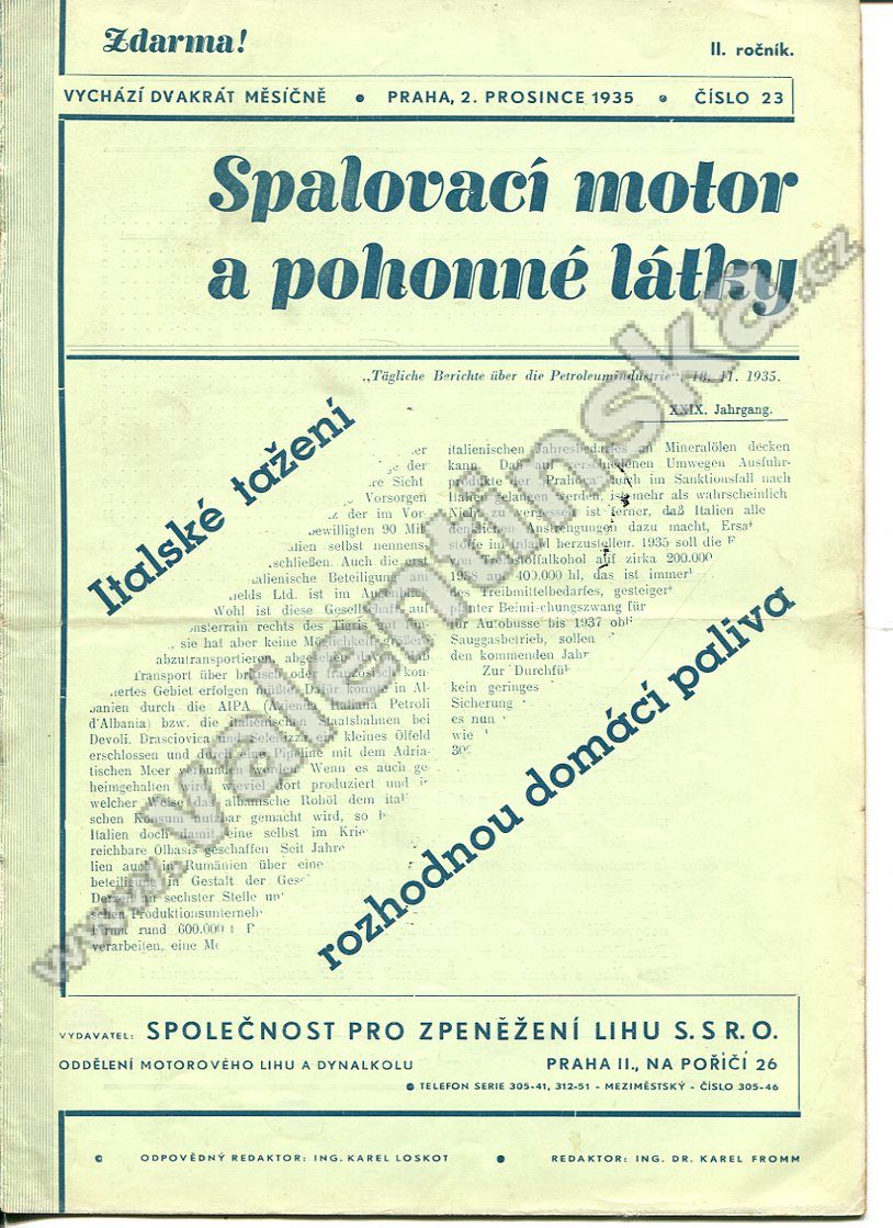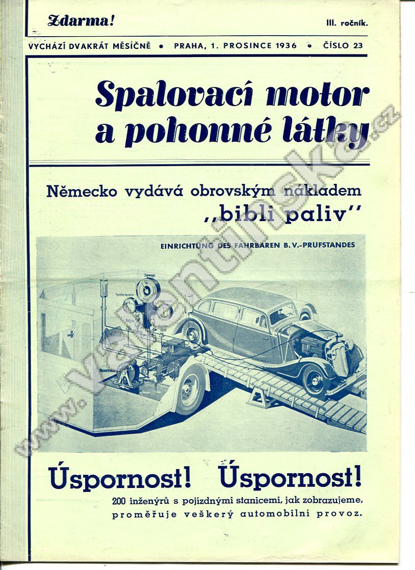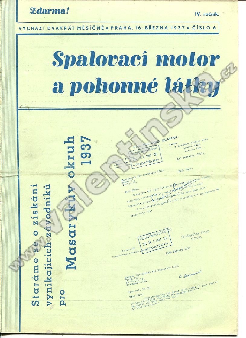 ČASOPIS SPALOVACÍ MOTOR A POHONNÉ LÁTKY IV. ročník, 1937, č. 2. jeden sešit formátu A4, 12 stran a o..
