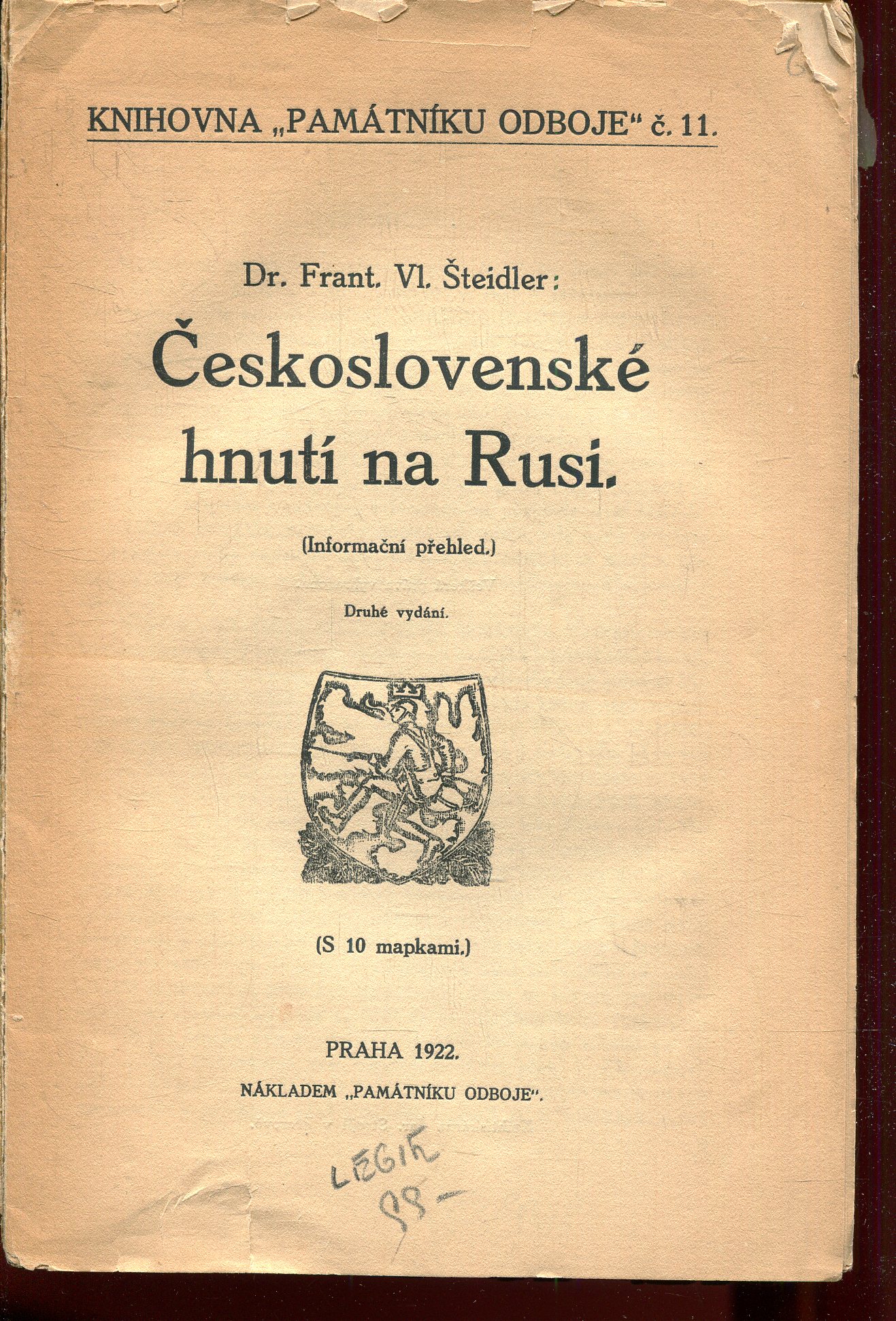 Vydalo nakladatelství Vojtěch Šeba, Praha. Legionáři československé mládeži. Ilustroval ak.malíř A.L..