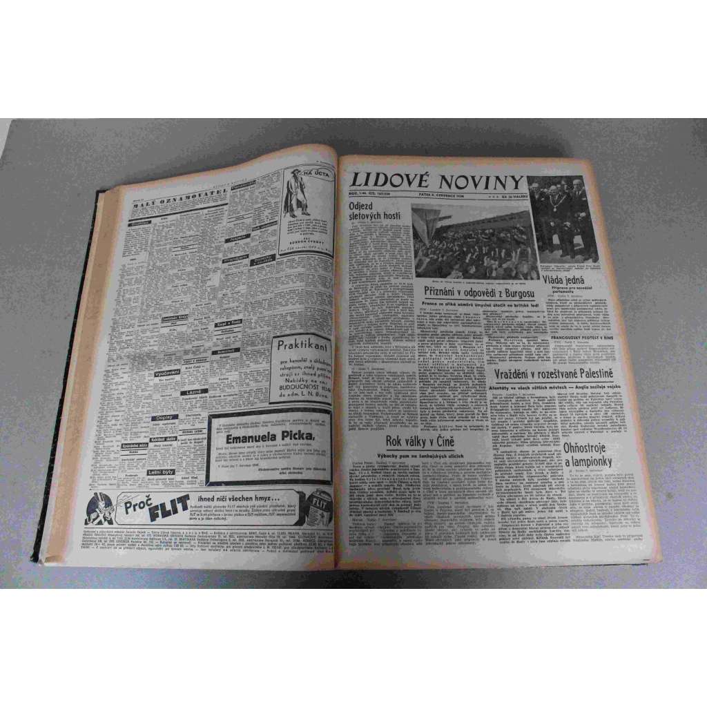 Lidové noviny 1938, roč. 46 (červenec-srpen) (deník, první republika, mj, Roosevelt proti diktátorům, E. Bass - Pozdrav sokolstvu [sokolský slet], Primátor Zenkl, Londýn jedná s Berlínem, Henleinovci budou vyjednávat)