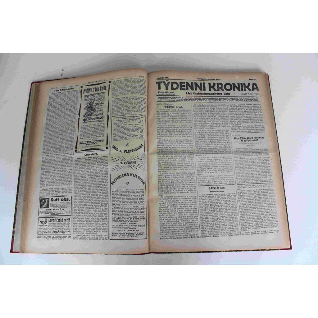 Týdenní kronika. List československého lidu 1922 roč. VIII (noviny, týdeník, první republika, mj. Pětileté výročí ruské revoluce, Masaryk a dělnictvo, Tři Internacionály, Bela Khun a maďarští komunisté)